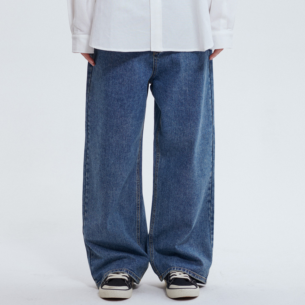 뒷포켓 D자수가 포인트인 와이드 데님팬츠