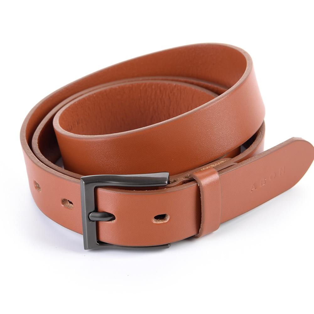 Miller Black Nickel Square Buckle Full Grain Leather Belt Camel