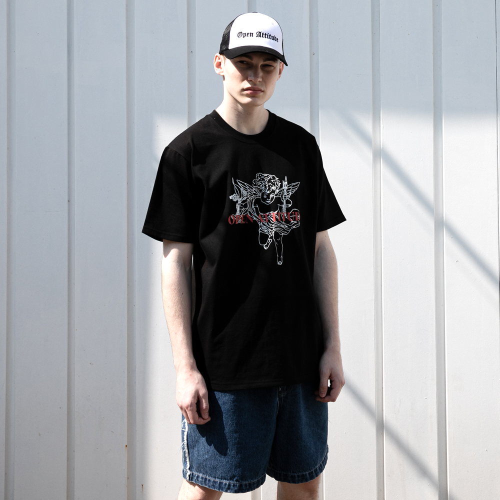 가벼운 소재로 그래픽이 특징인 스트릿 캐쥬얼 반팔티셔츠