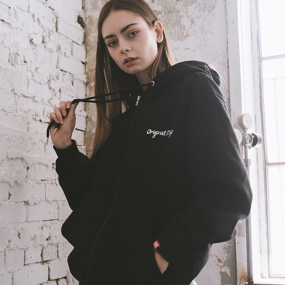 [2-WAY] KOKO 아플리케 피그먼트 후드 집업 스모크블랙