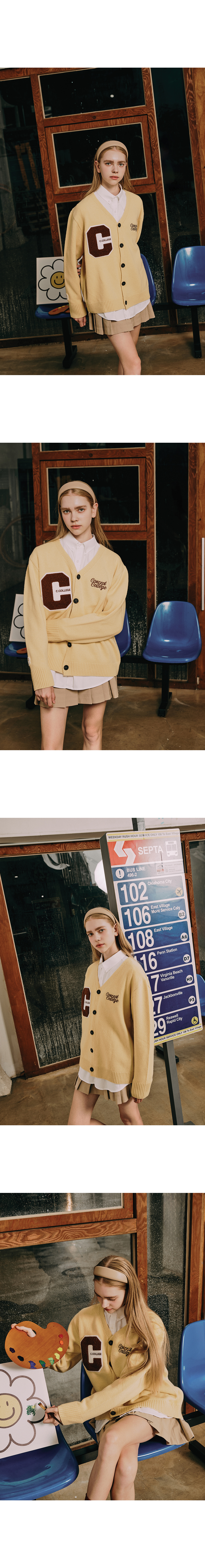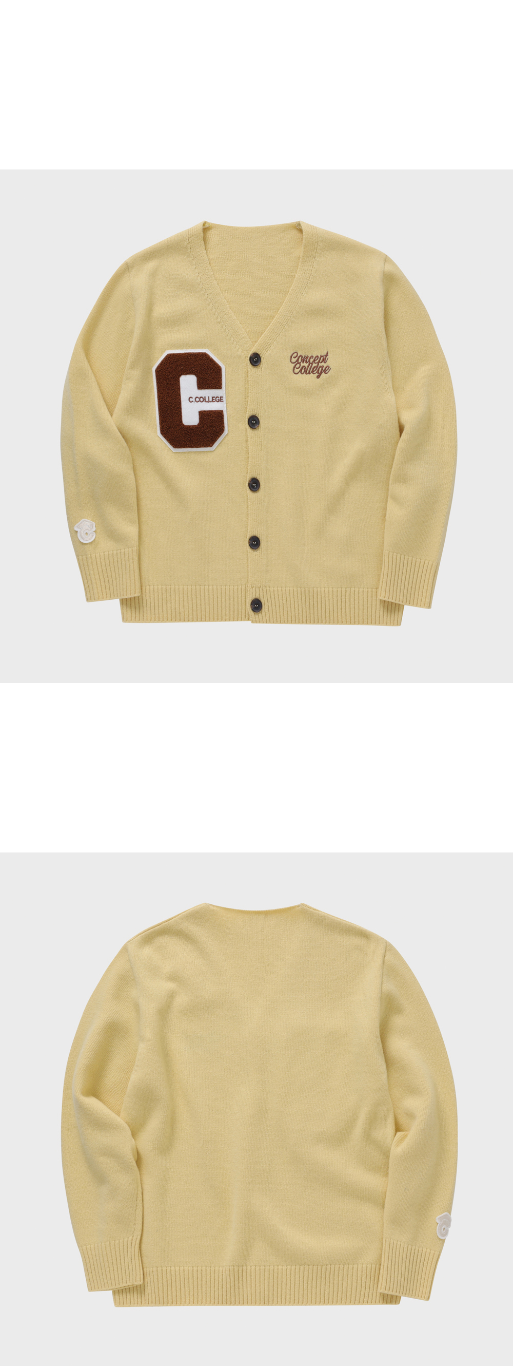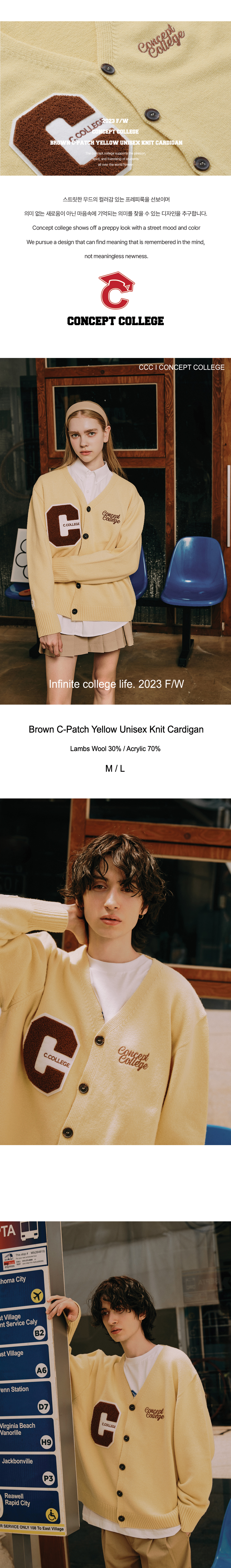 이번시즌 새롭게 선보이는 컨셉트 컬리지의 브라운 C패치 디자인이 돋보이는 니트 가디건입니다.
