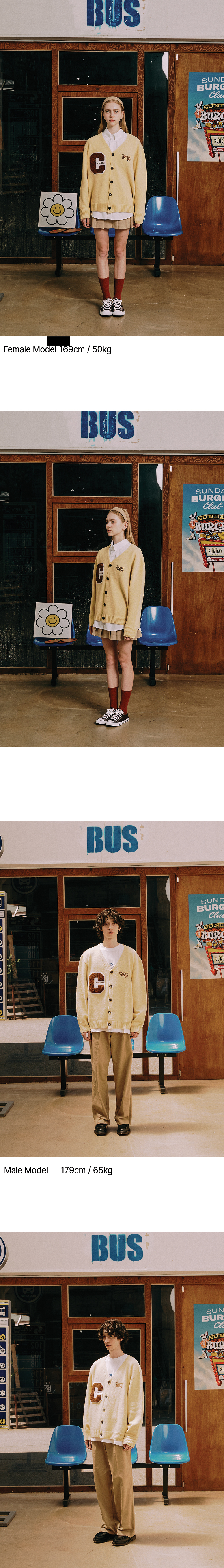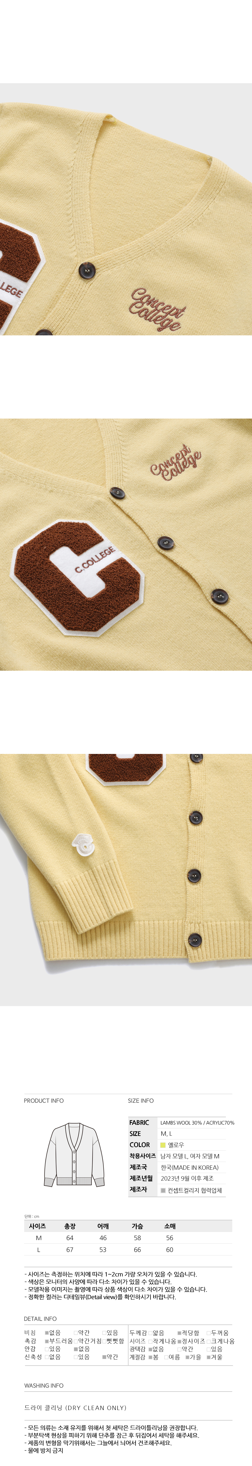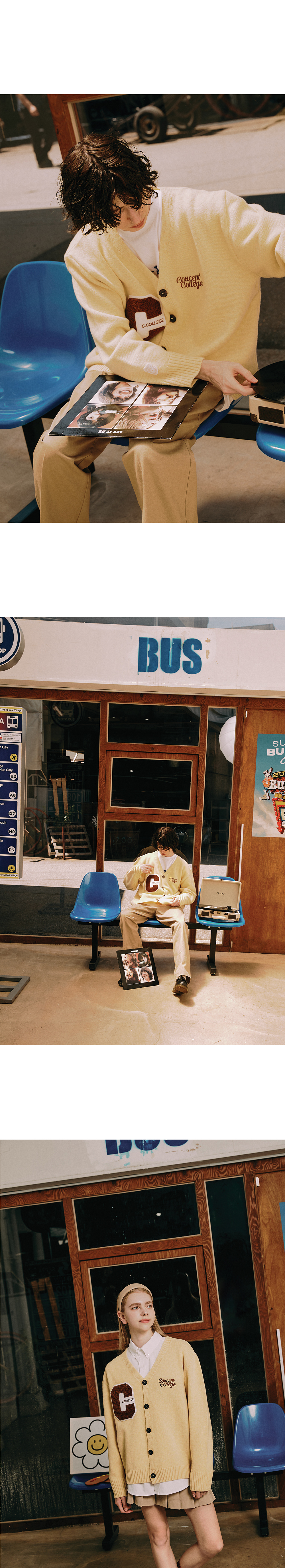 이번시즌 새롭게 선보이는 컨셉트 컬리지의 브라운 C패치 디자인이 돋보이는 니트 가디건입니다.