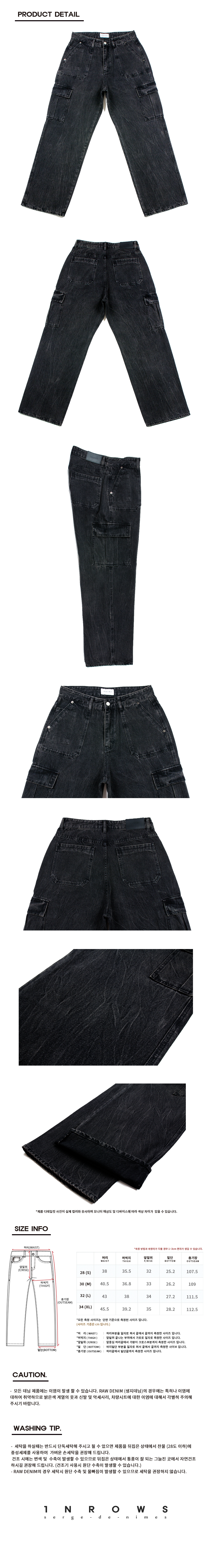 KAEISS RAVEN SOARING COATING DENIM CARGO PANTS - BLACK