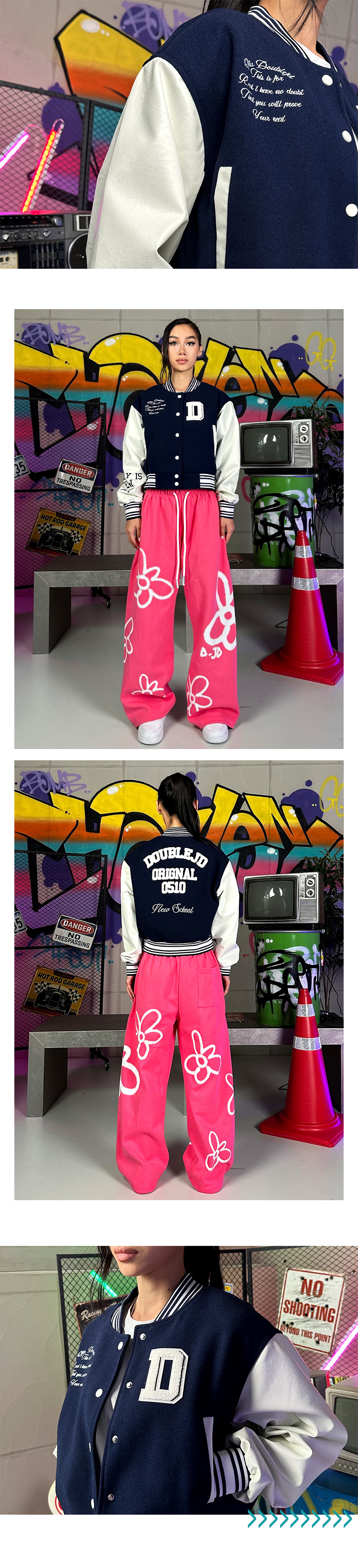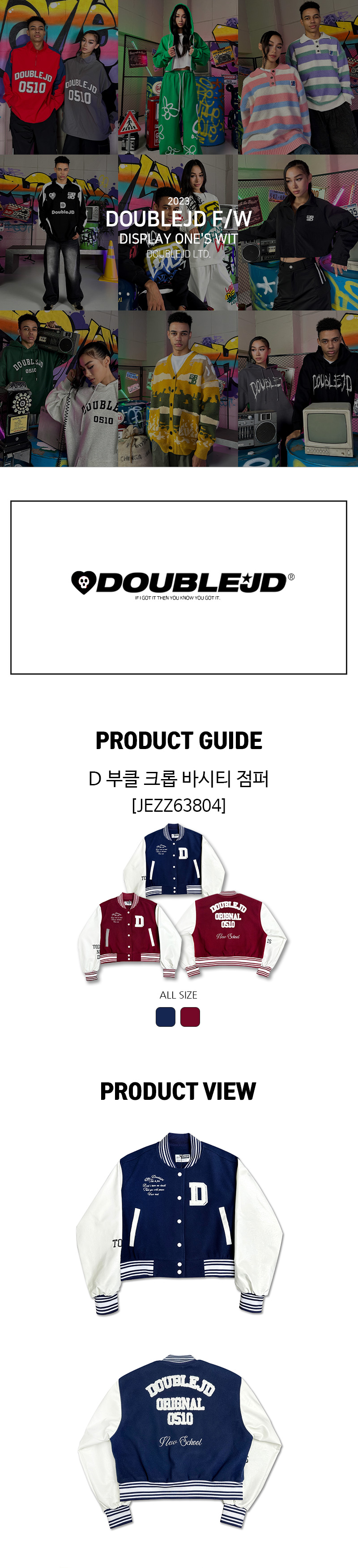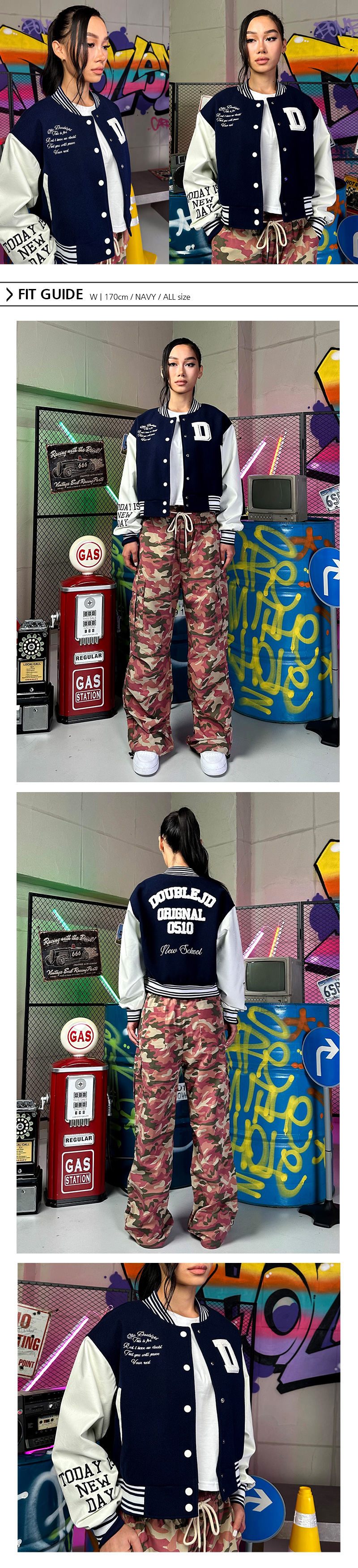 짧은 기장의 바시티 자켓입니다.