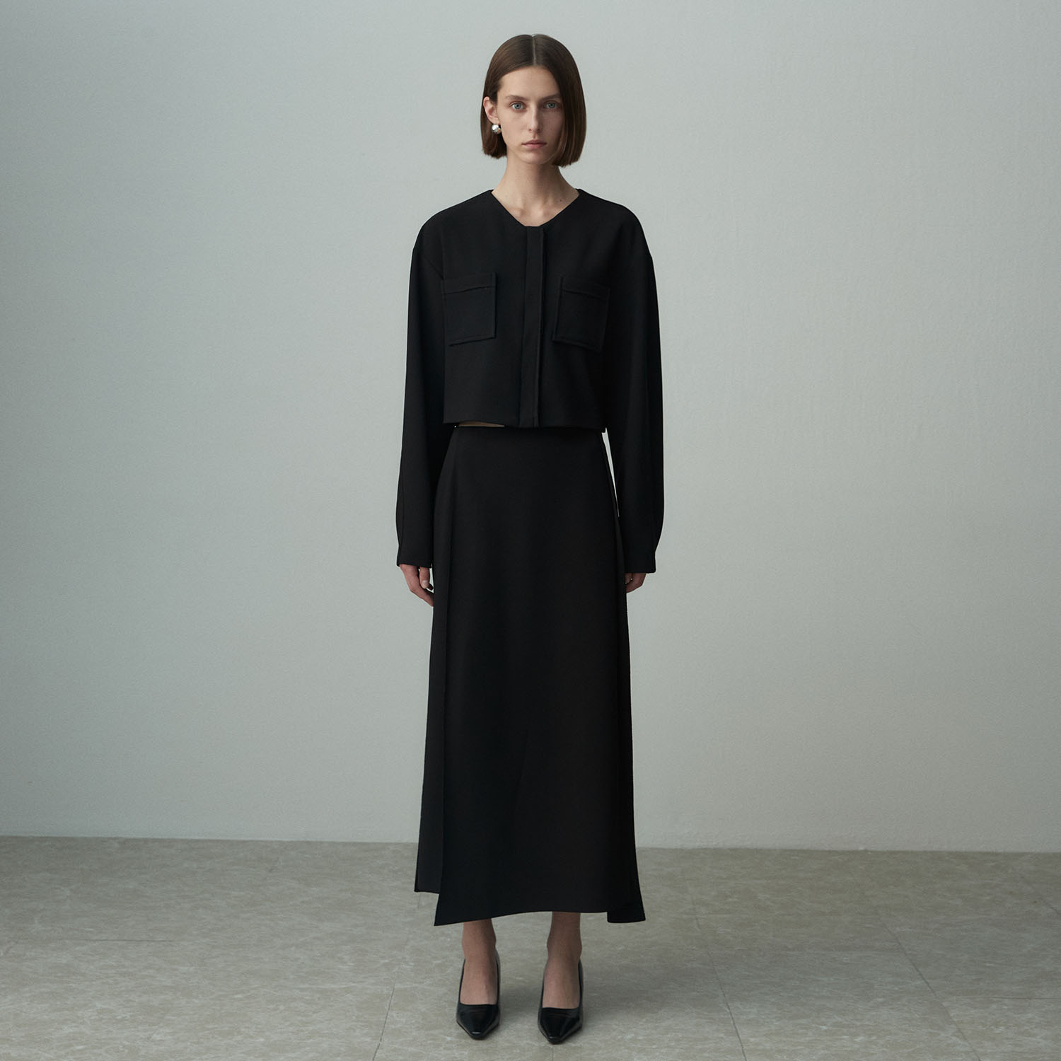 같은 소재를 사용한 스커트와 함께 SET-UP으로 착용하여 더욱더 스타일리시하게 룩을 완성시킬 수 있습니다.