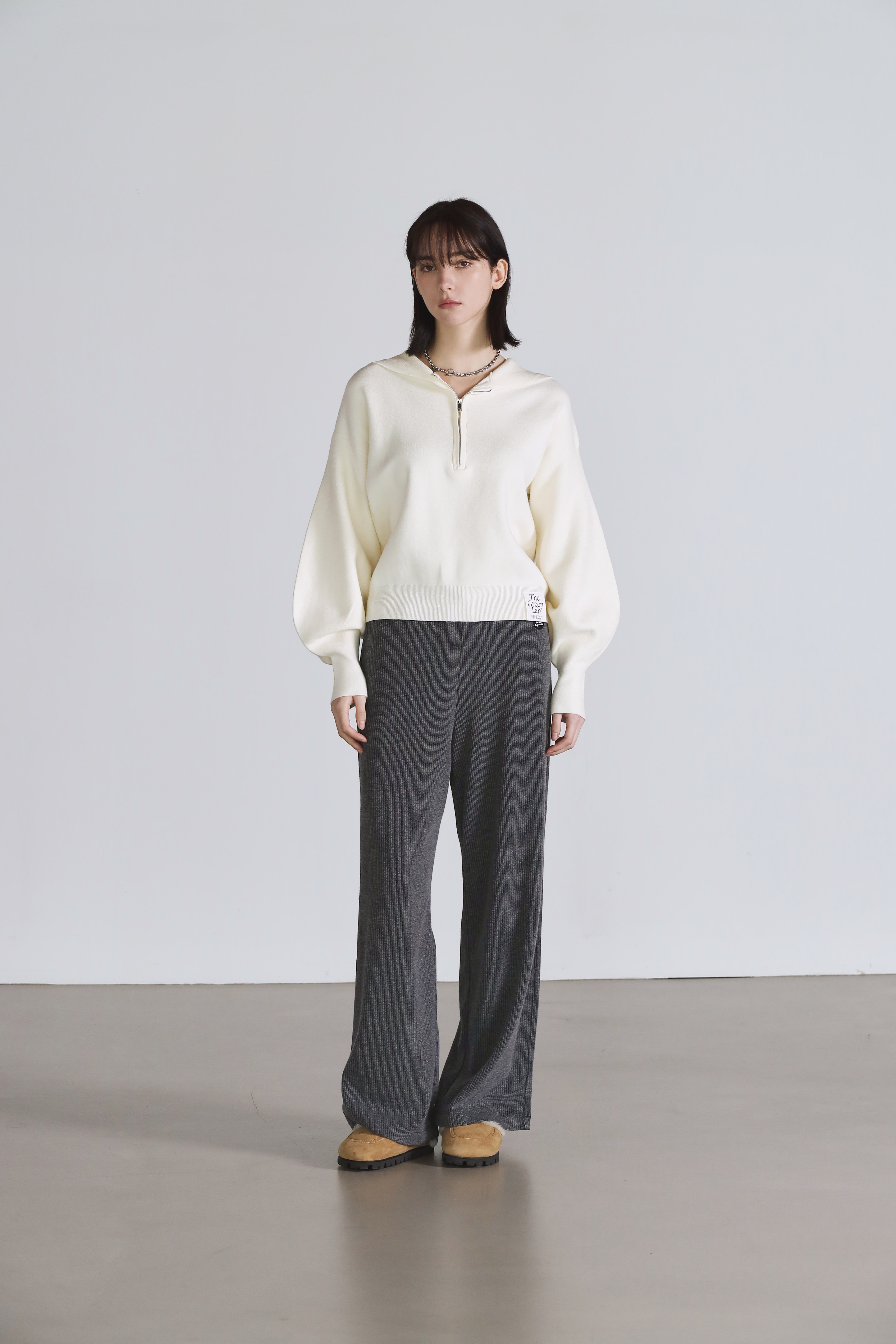 2-WAY RIBBED ZIP HOODIE - Melange Gray