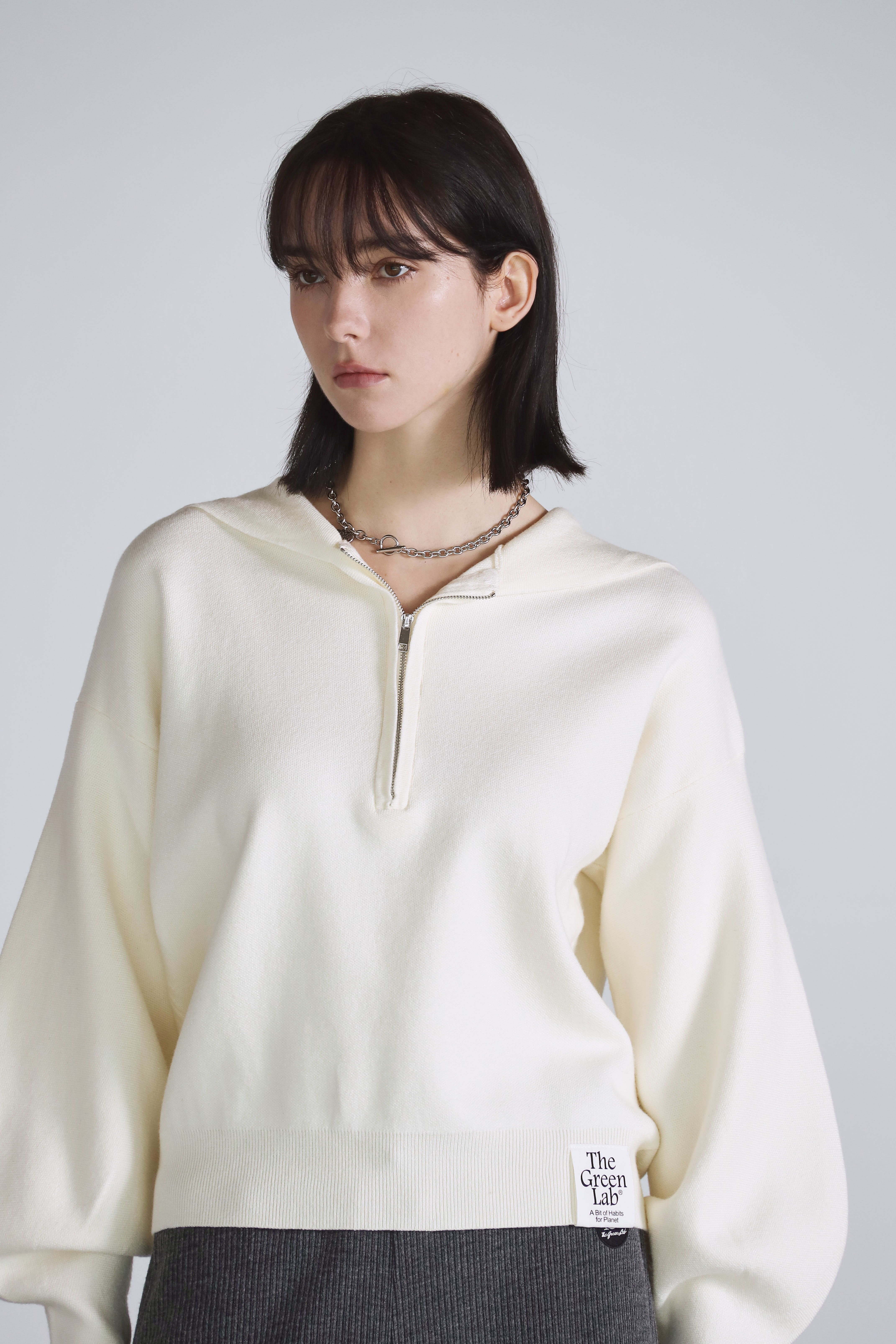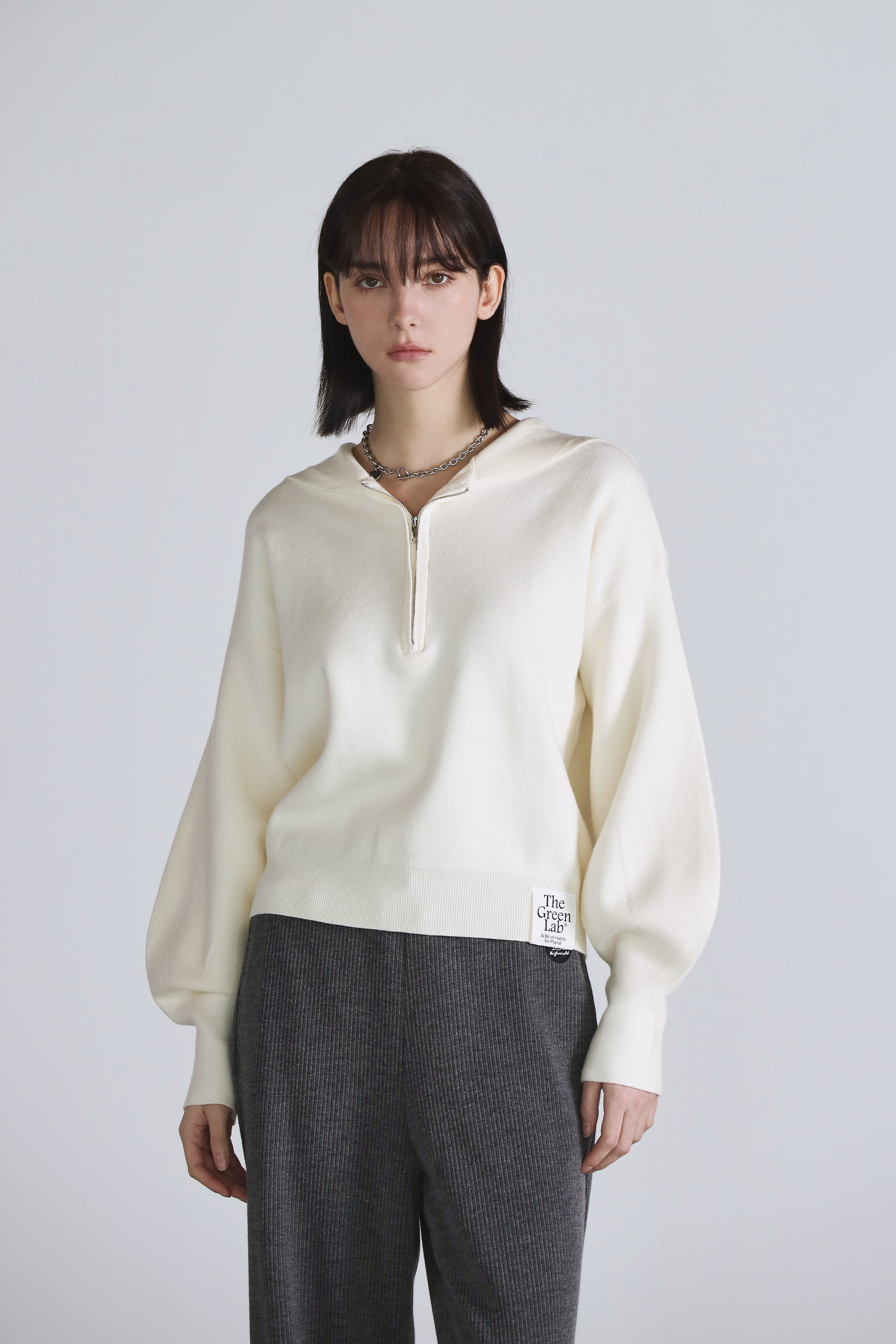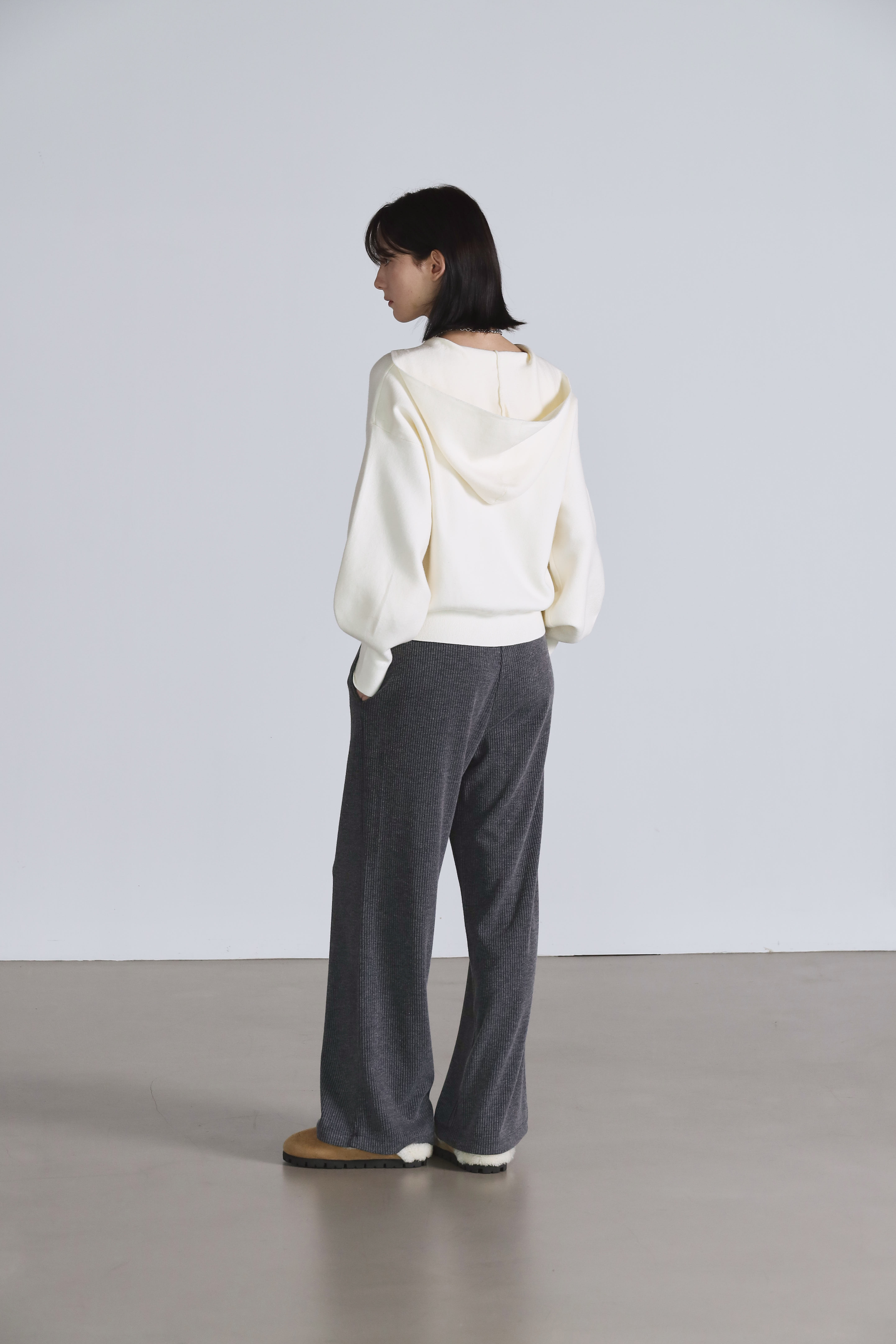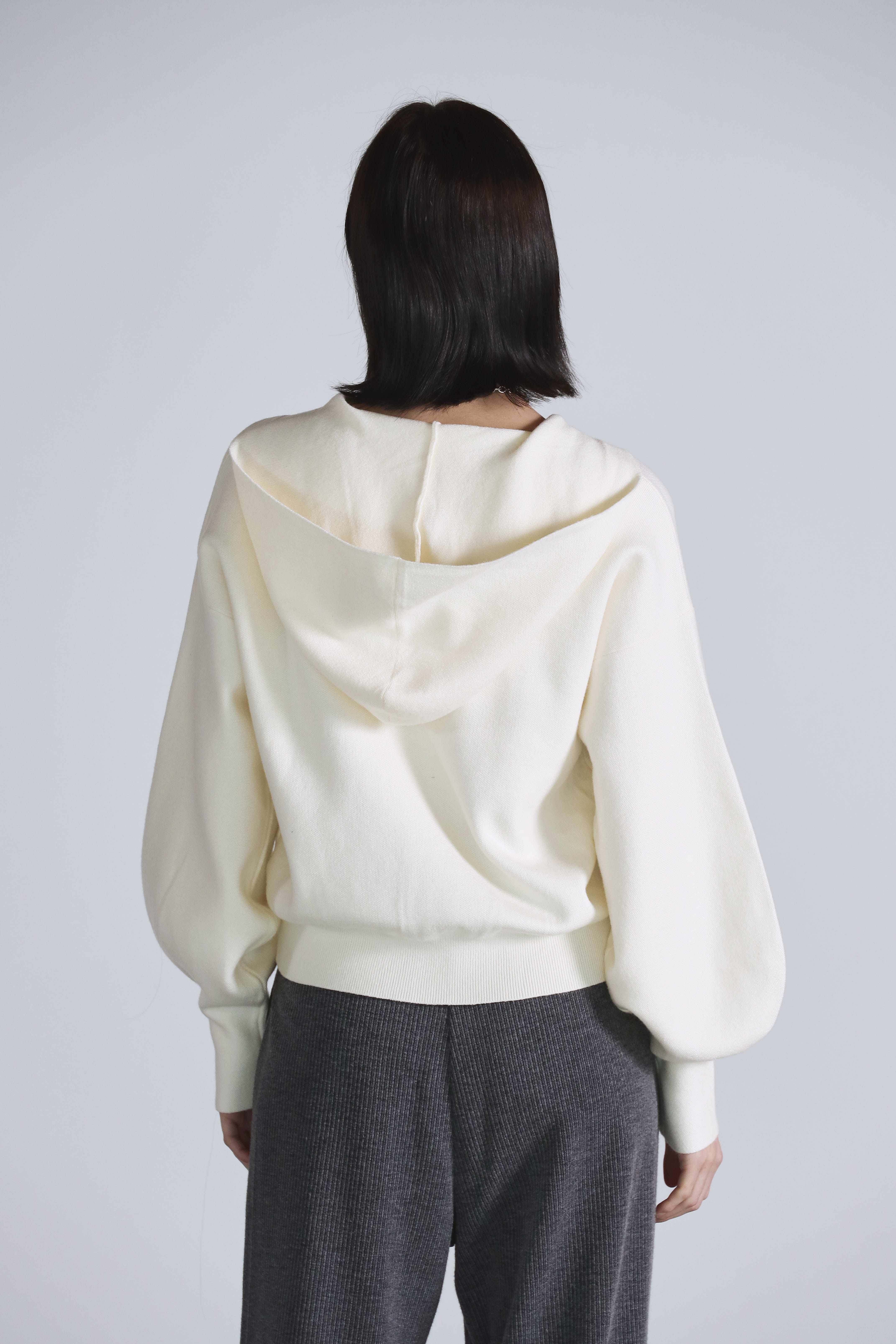 균형감 있는 실루엣과 코지한 무드의 후드 니트 집업