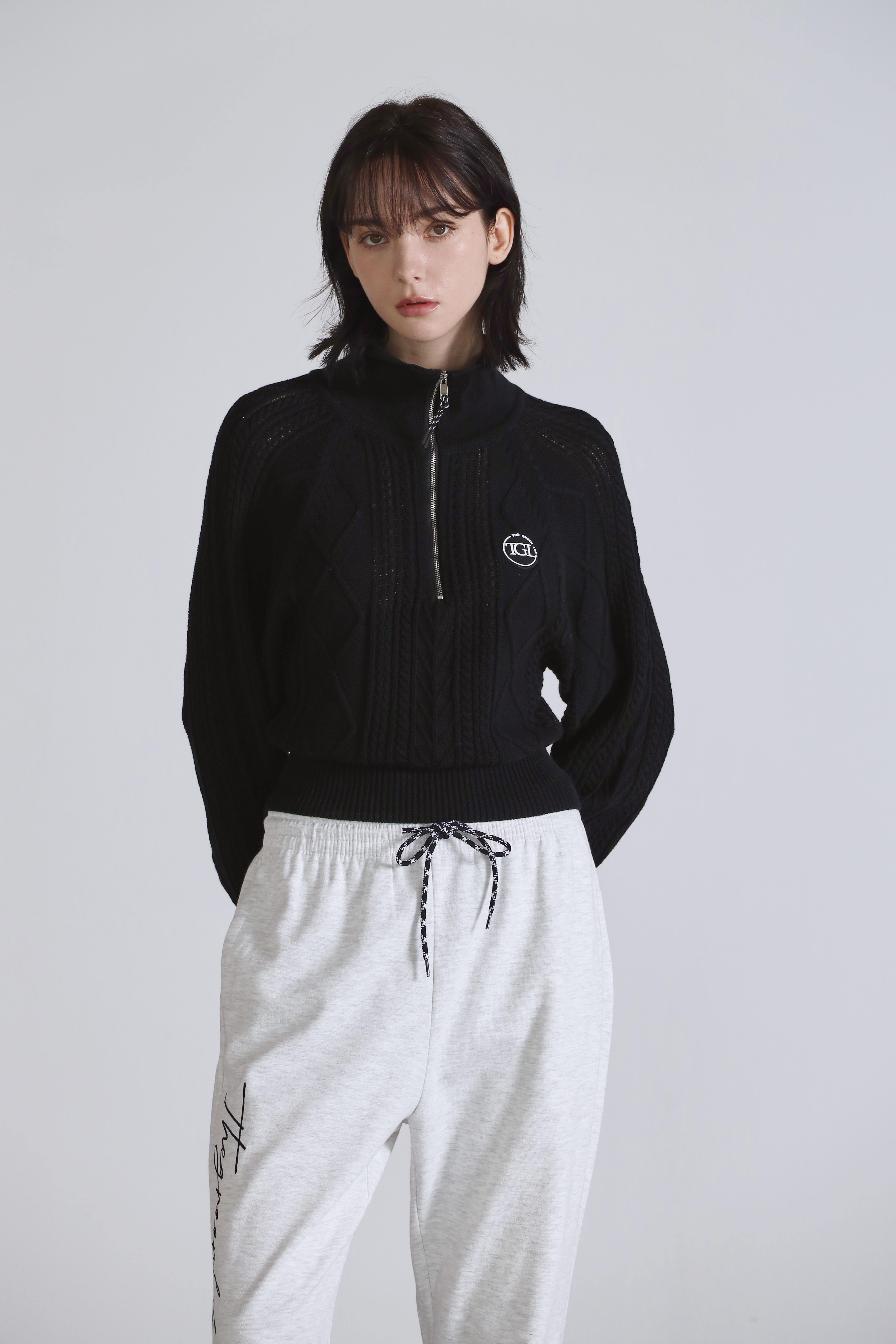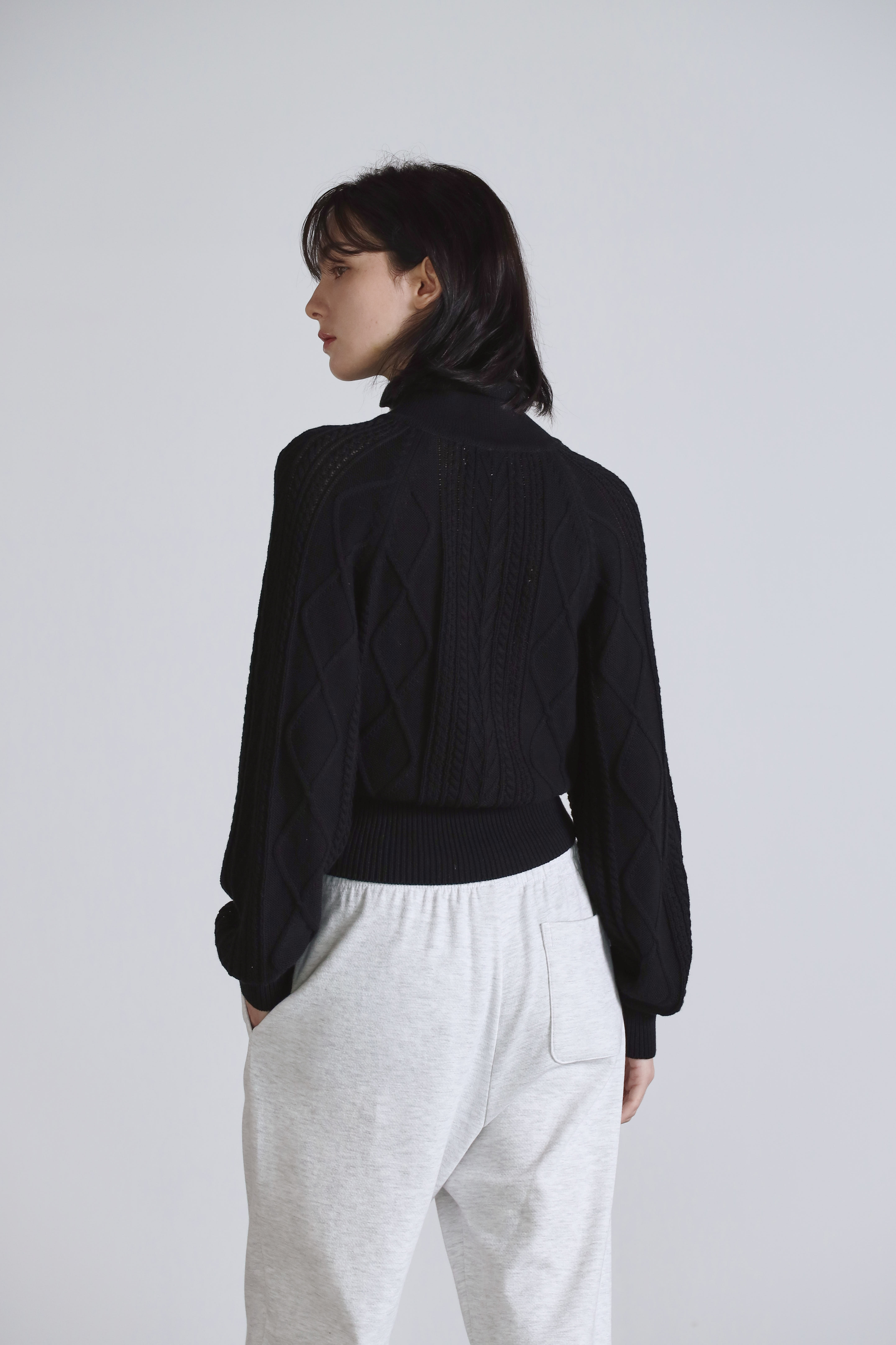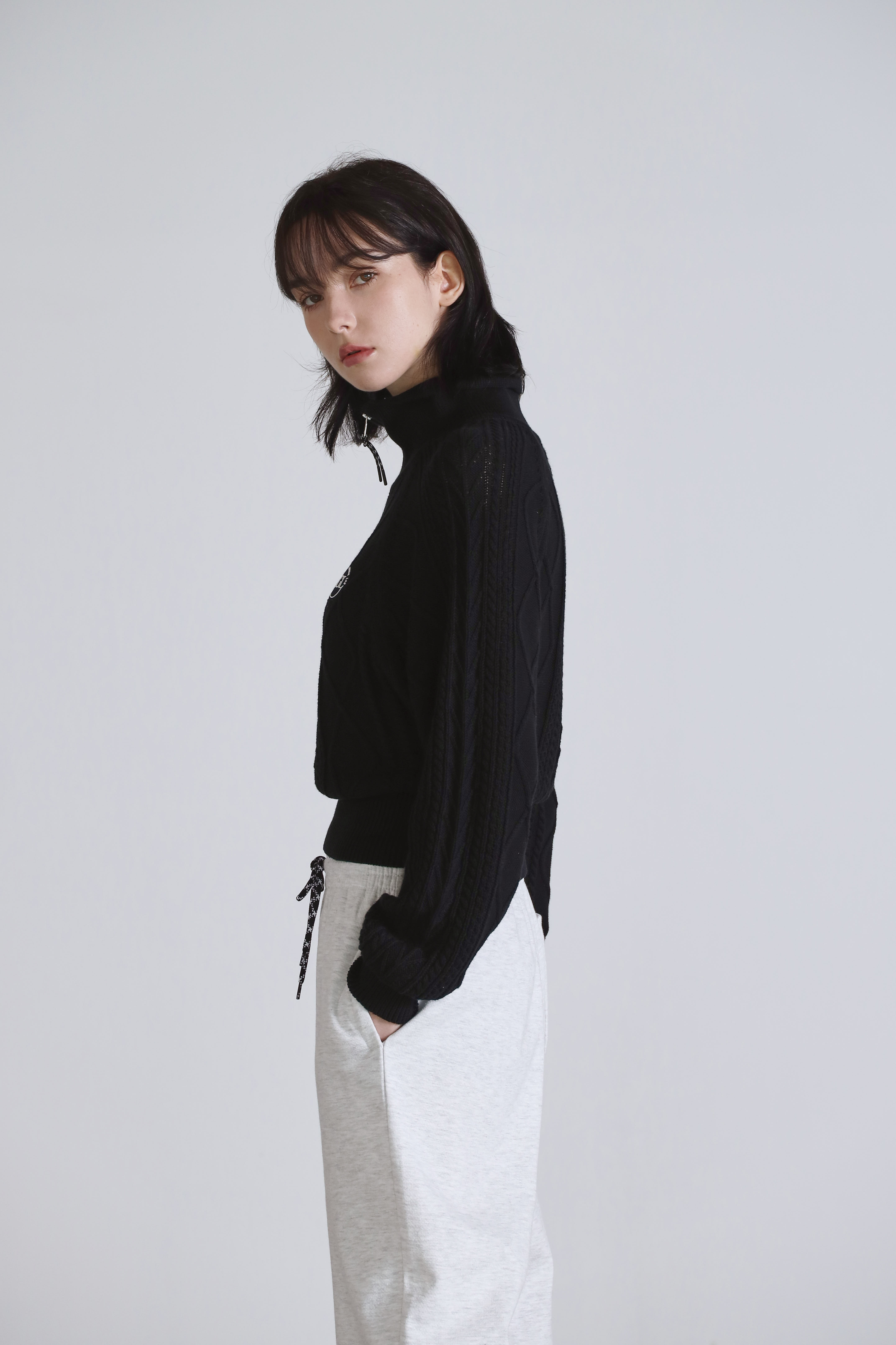 2-WAY Ribbon Crop Knit Zip-up Gray