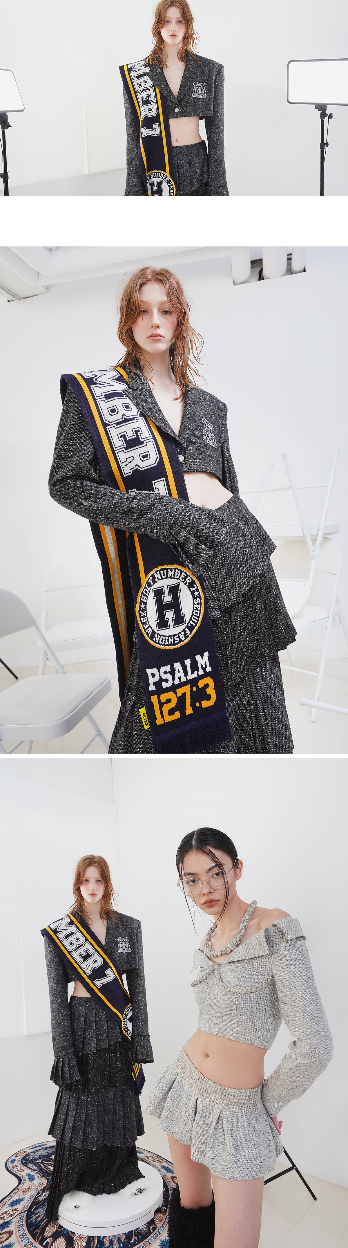 유니크한 스트라이프 디자인의 타이 니트 머플러
