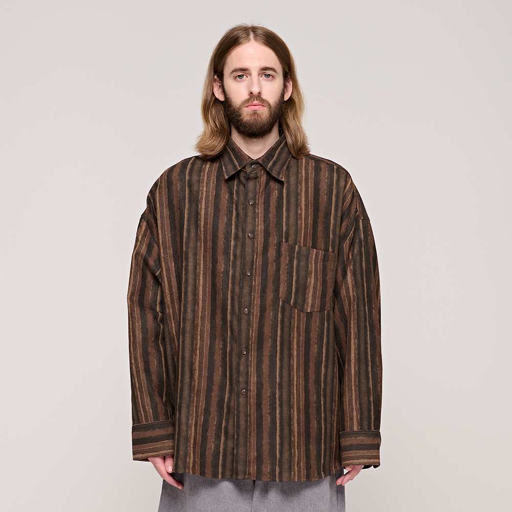 PAISLEY PRT. DENIM PLEATS SHIRT (Black)