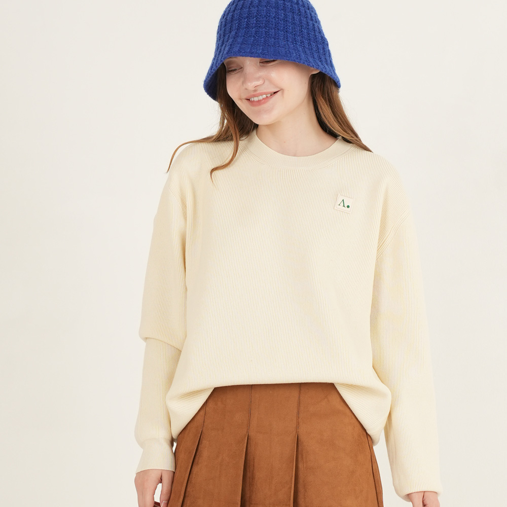 넓은 플랩 형태의 넥라인과 함께 골지 원단의 신축성으로 바디라인을 잡아주어 슬림핏으로 페미닌한 느낌을 주는 니트입니다.