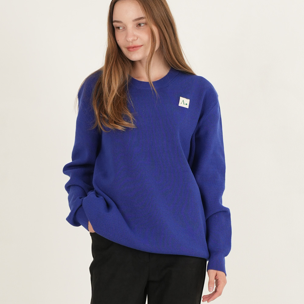 사선 플랩 형태의 비대칭 넥라인 디자인의 페미닌한 니트입니다.