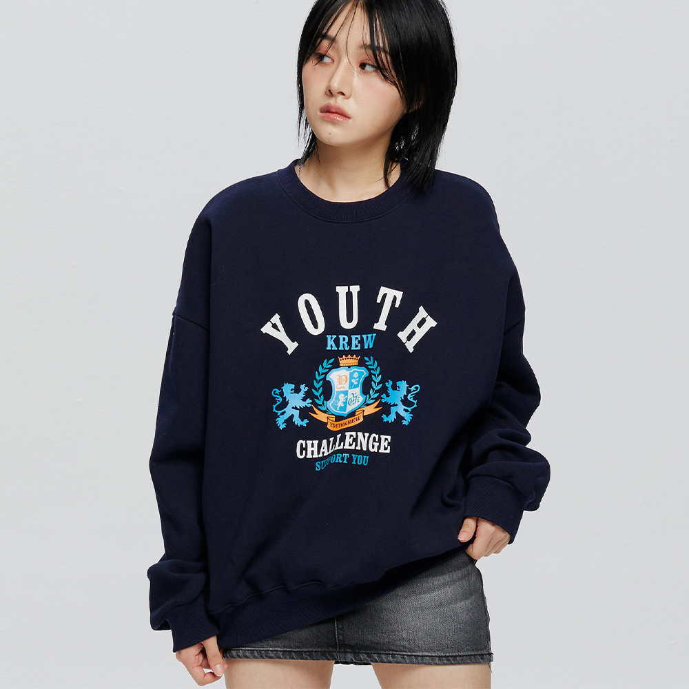 우먼즈 크롭 르 리스 발포 엠보자수 맨투맨 네이비(FCB4TS360W)