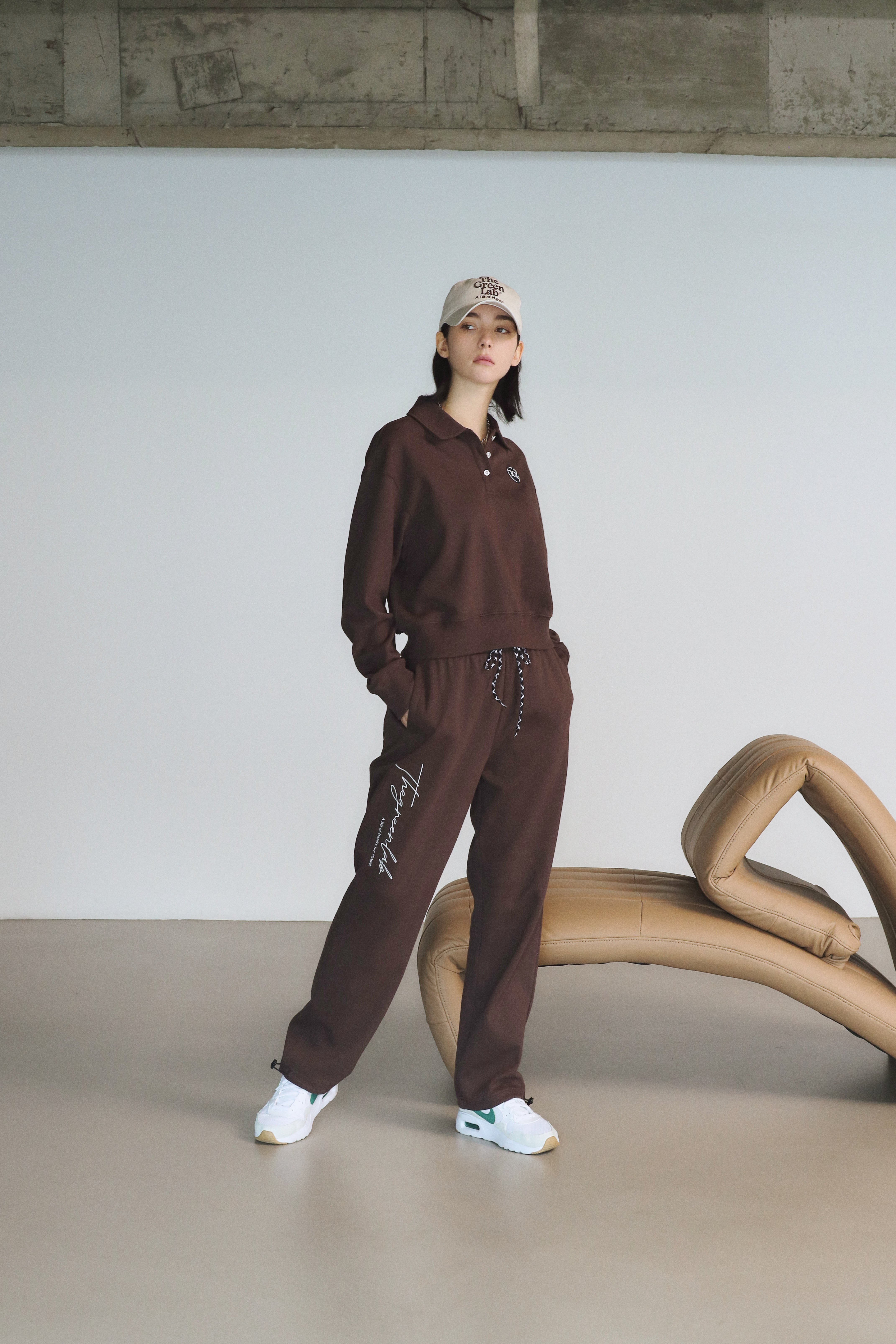메쉬 원단,심플한 레터링의 와이드한 핏의 조거 팬츠