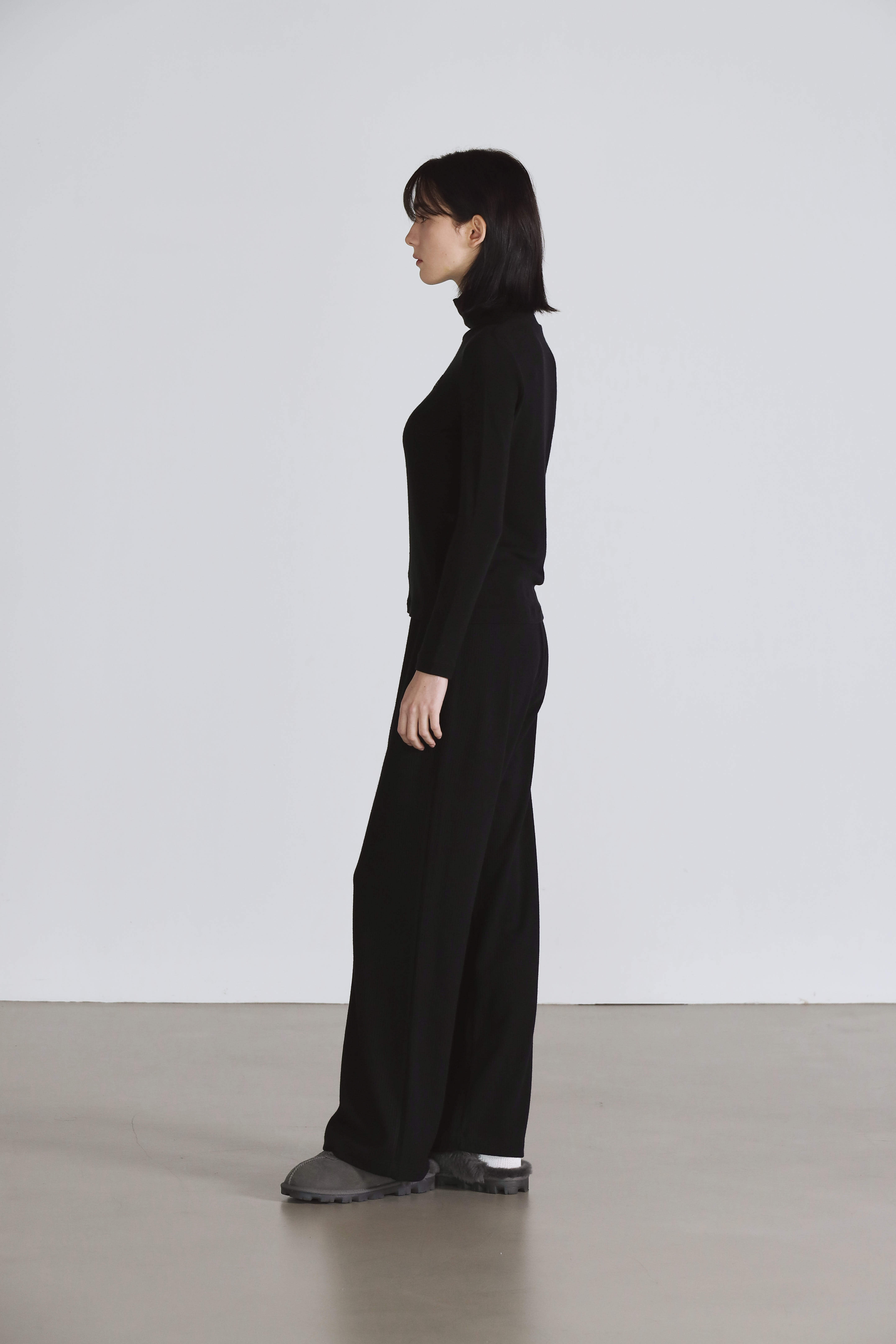 Two Tuck Double Napping Sweat Wide Pants - Black (Fleece)