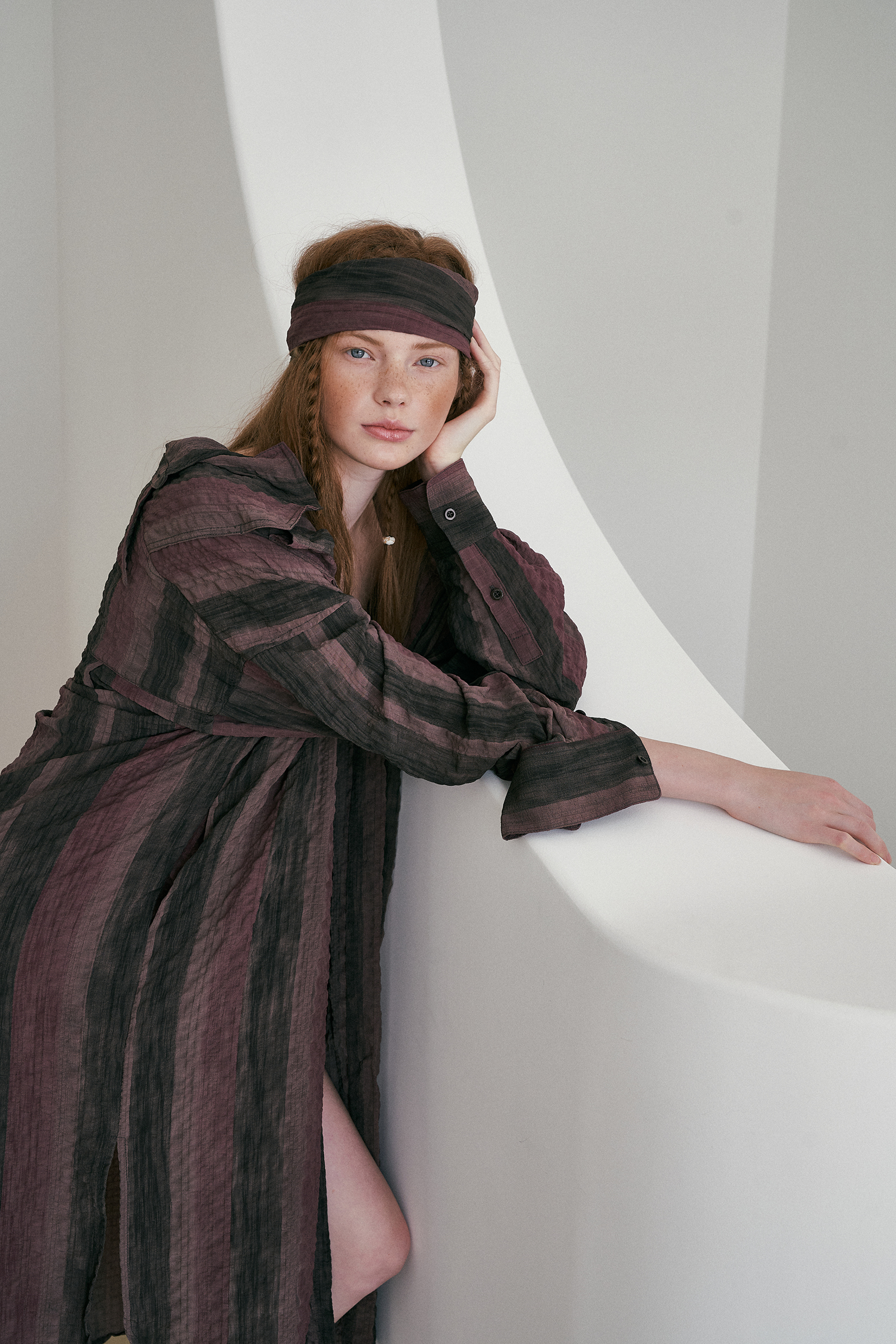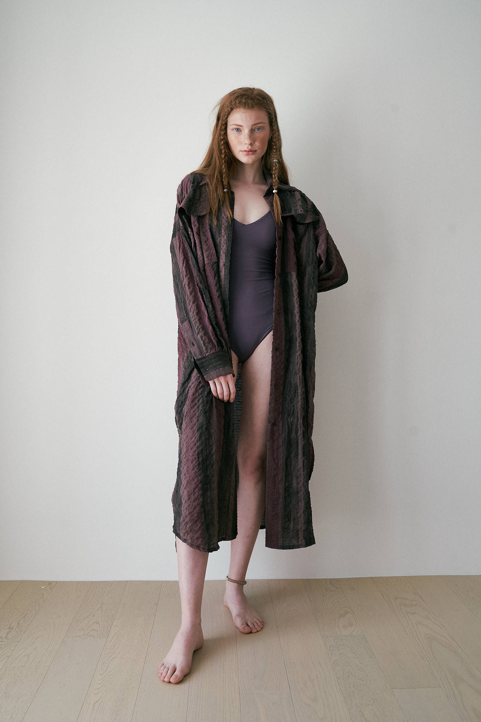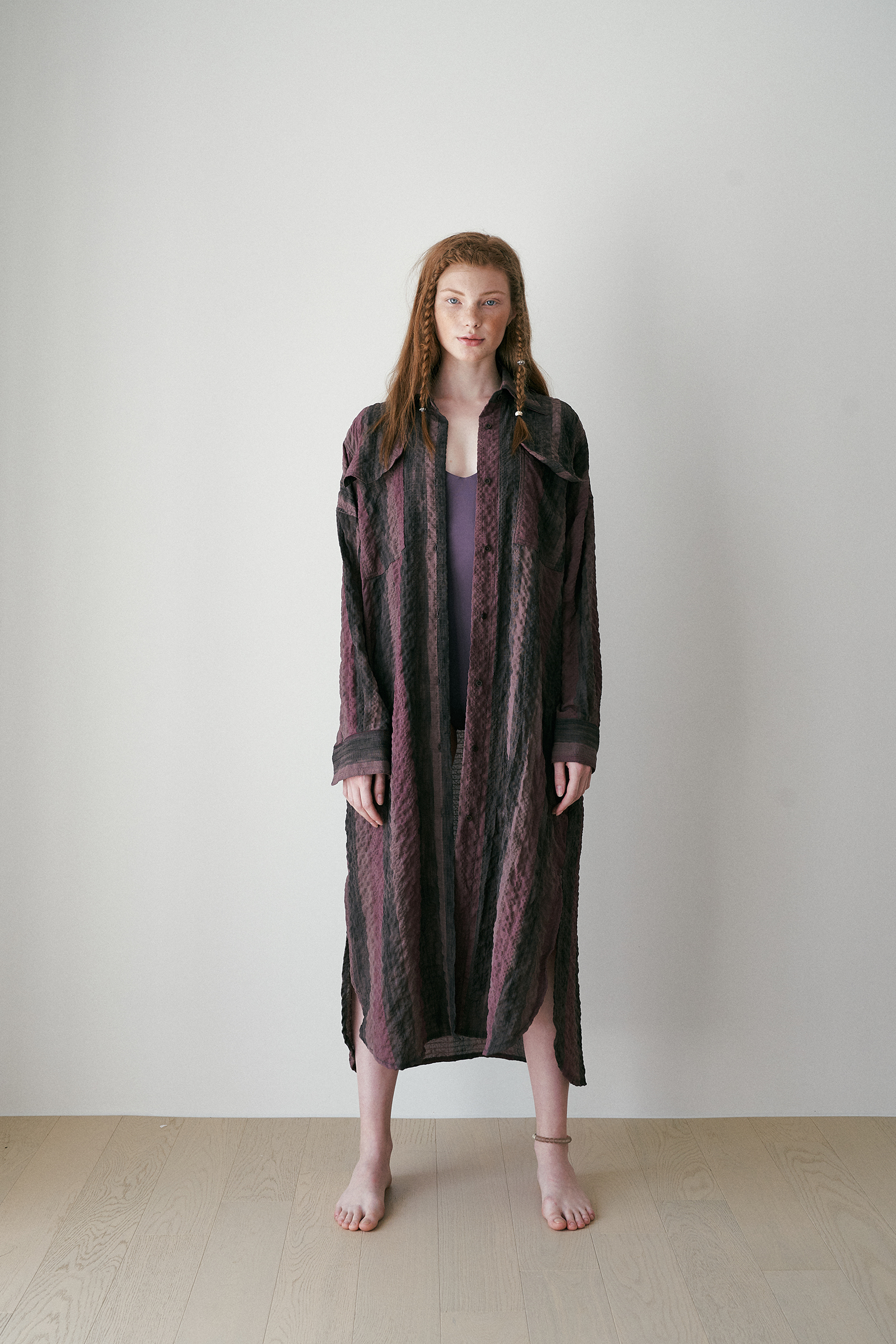 seersucker long shirt brown