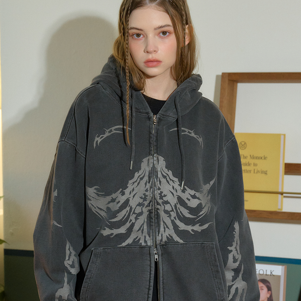 SP_TRIBAL_PIGMENT_OVERFIT_HOOD_ZIP_UP GREY