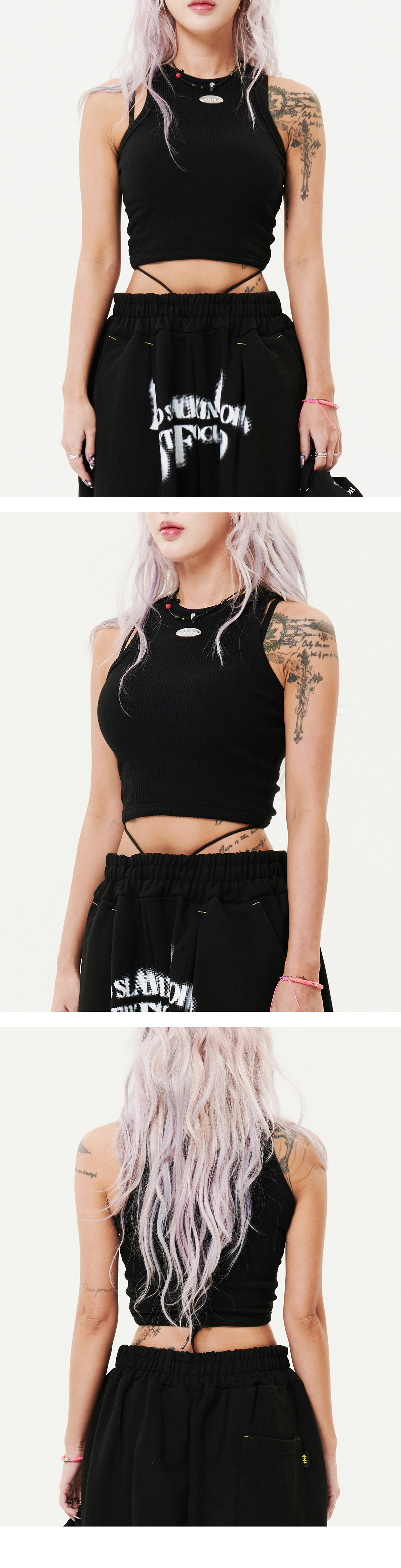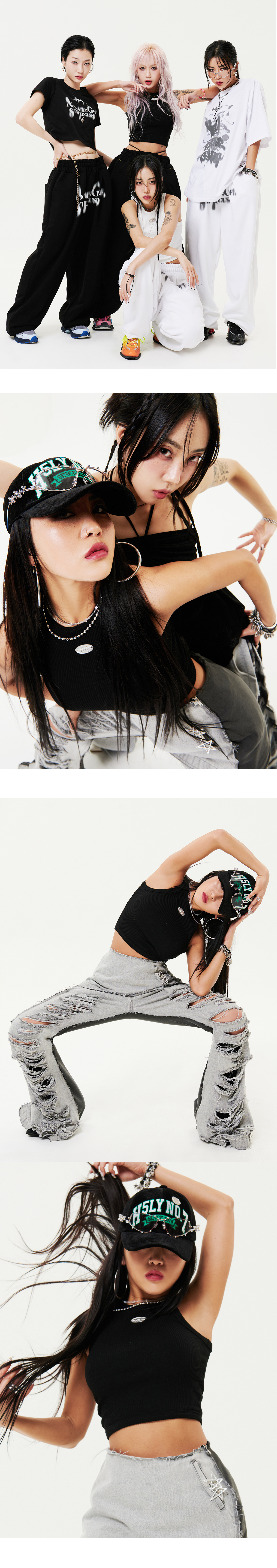 은은하게 반짝이는 소재 위로 언밸런스한 핀턱과 밑단 스트랩 디테일로 입체적인 포인트를 더한 나시입니다.