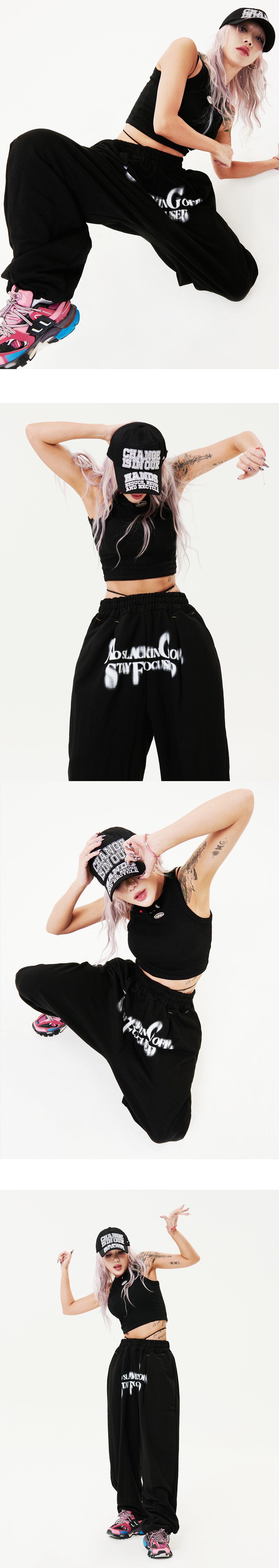 CocaNButter Oversized Hip Hop Dance Studio Balloon Sweat Pants_BLACK