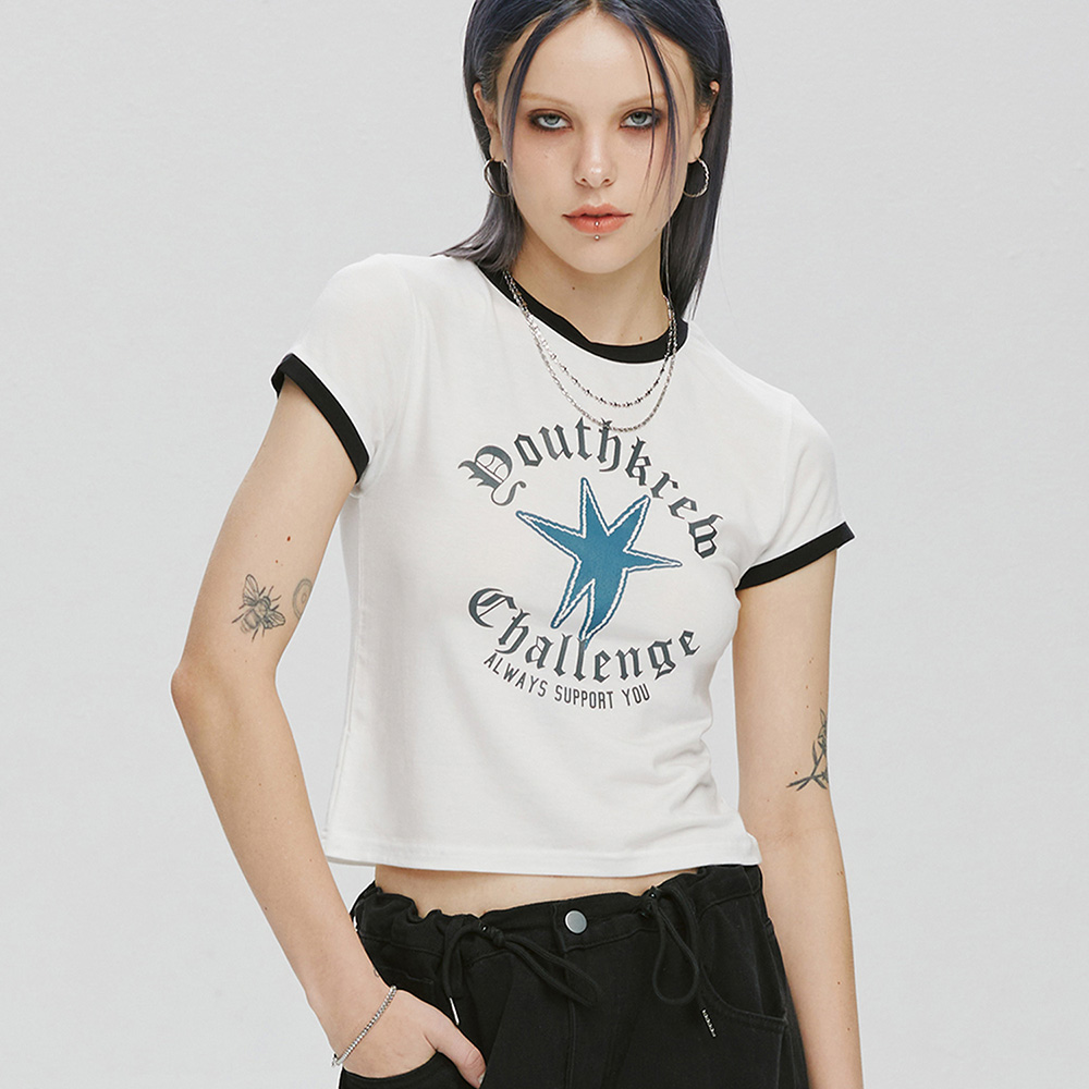The Limit CROP Ringer Short Sleeve Tee Black