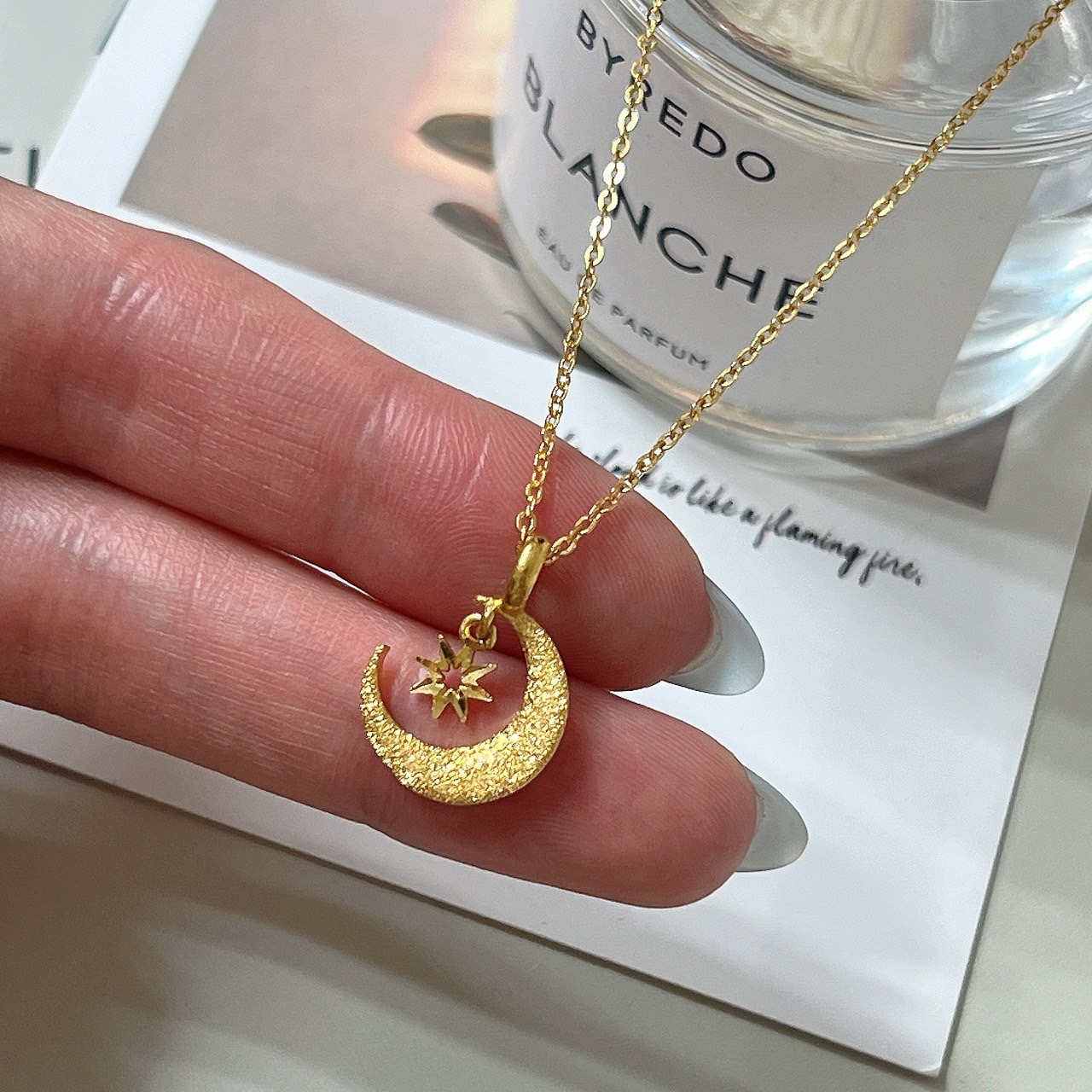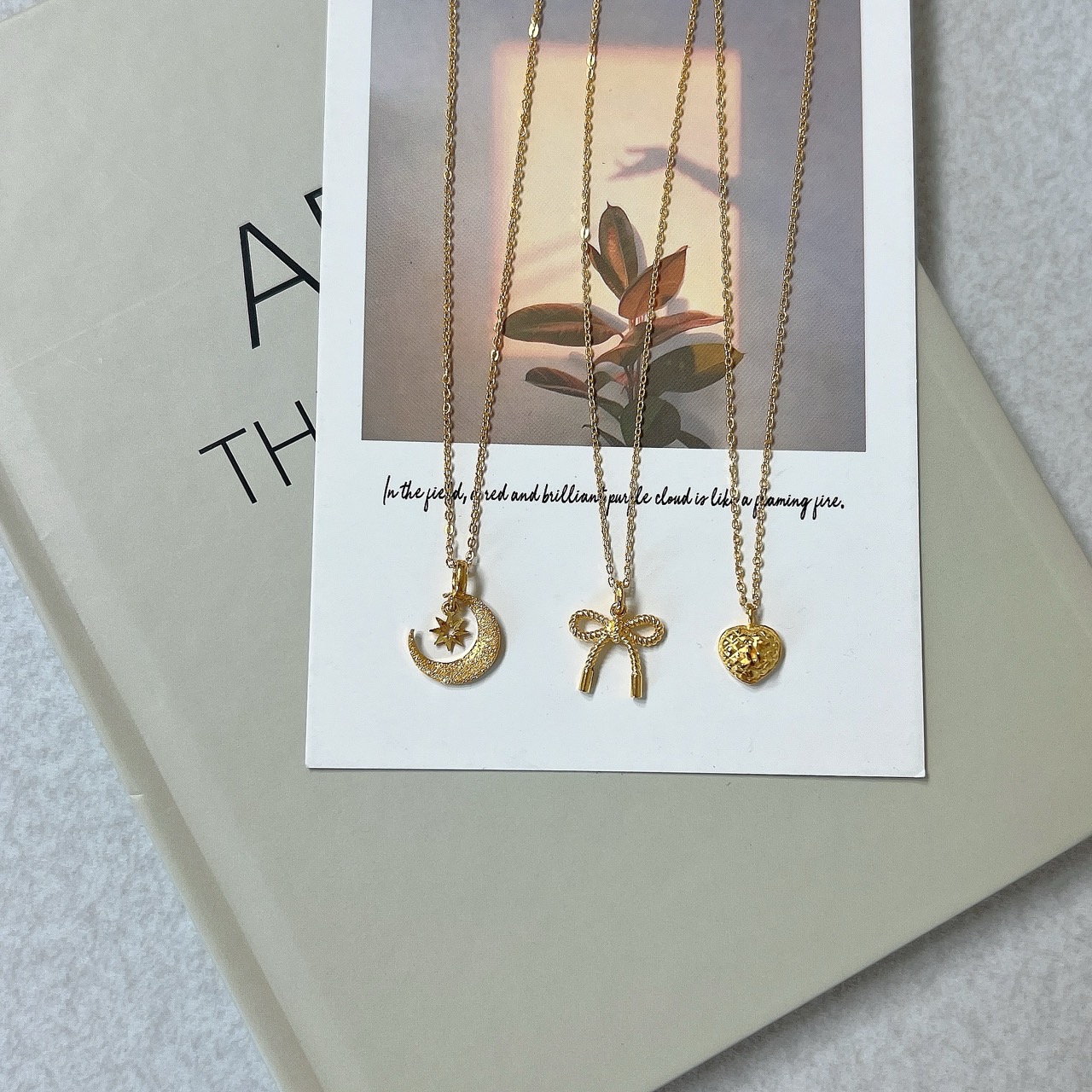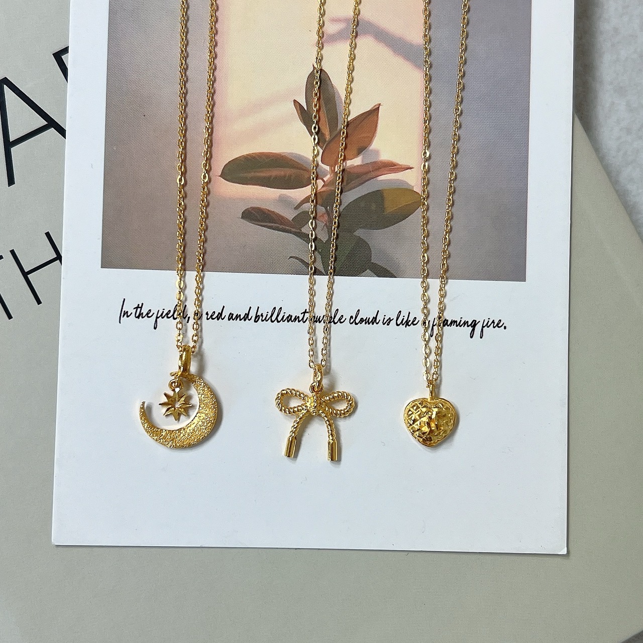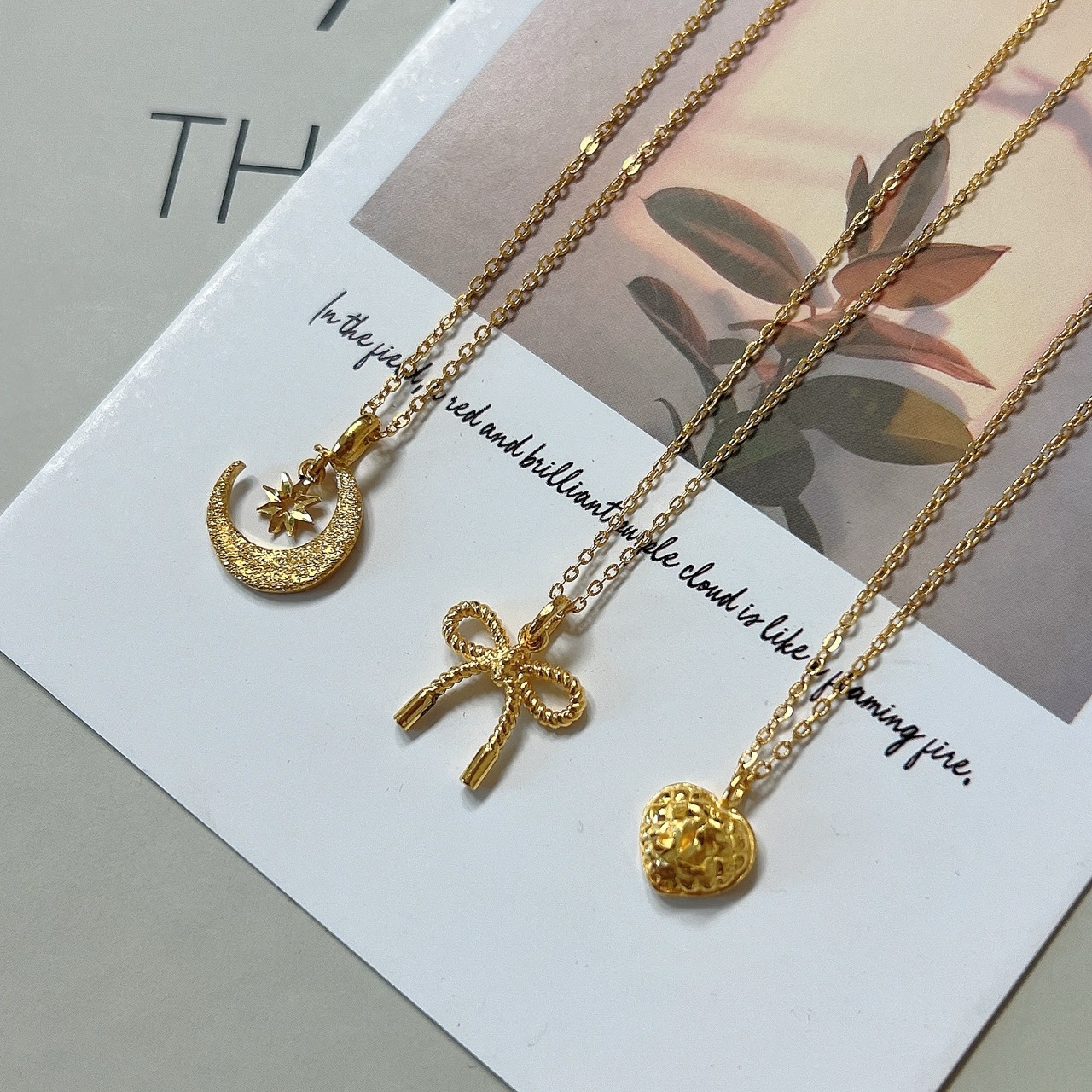 24K Pure Gold Necklace Moon Ribbon Heart 3.75g