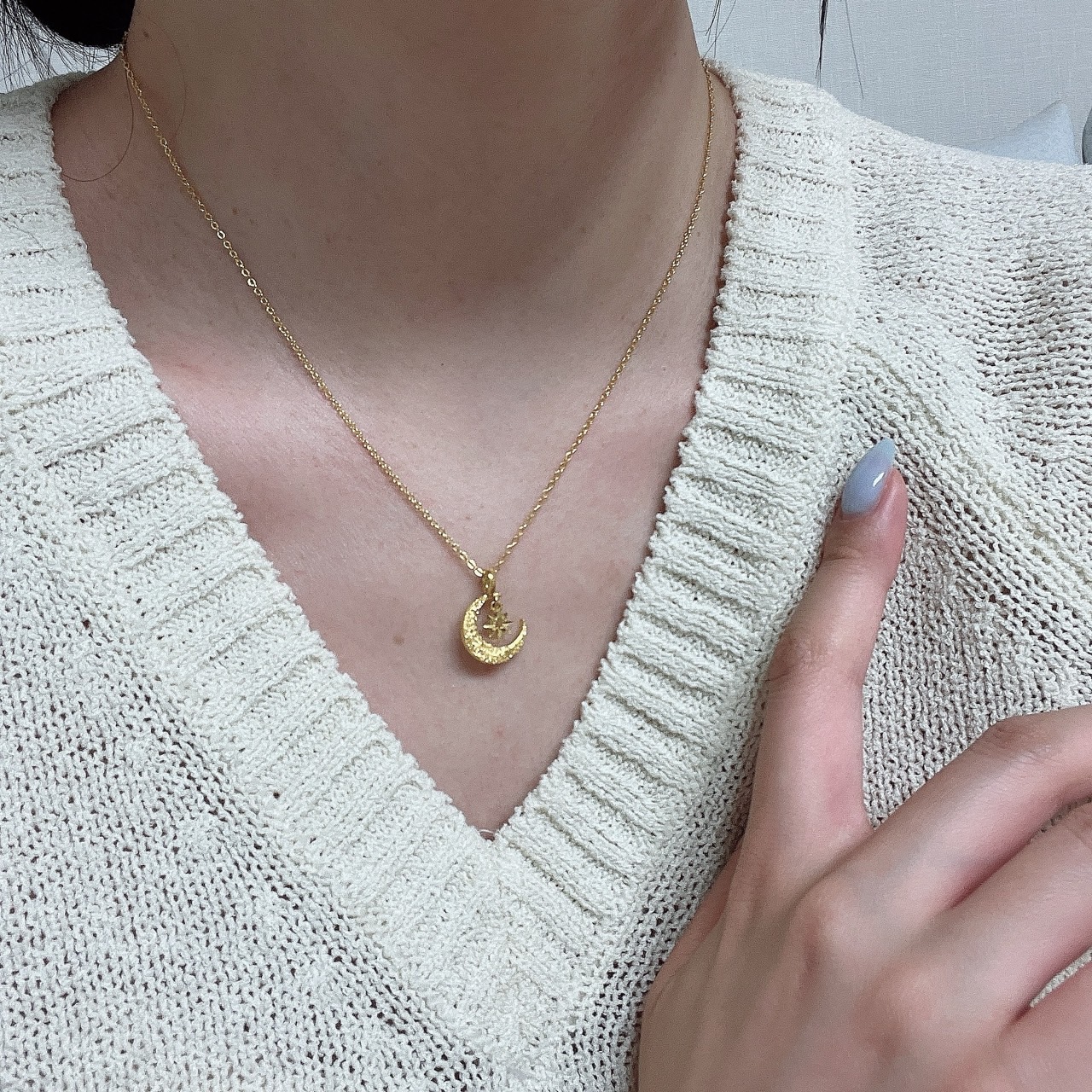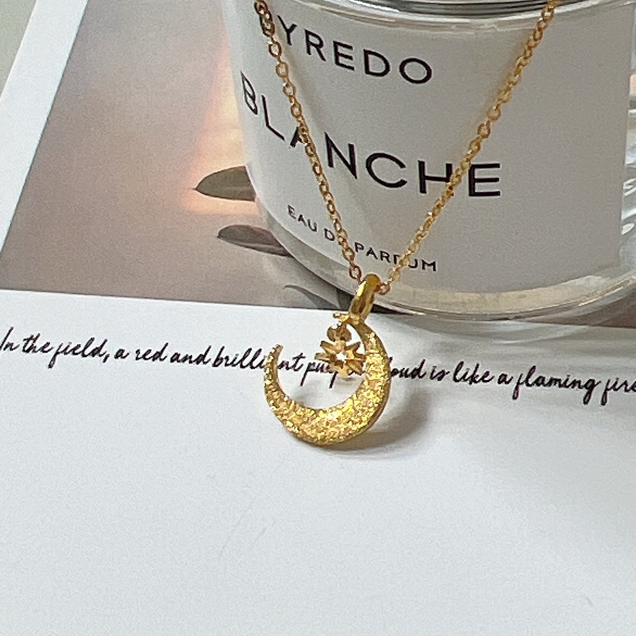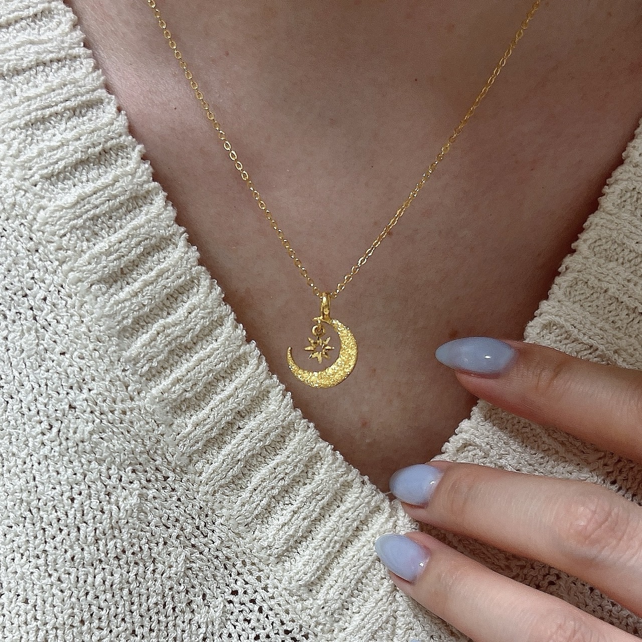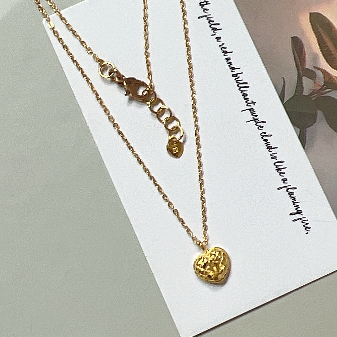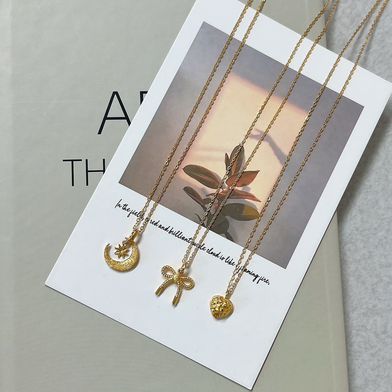 24K Pure Gold Necklace Moon Ribbon Heart 3.75g