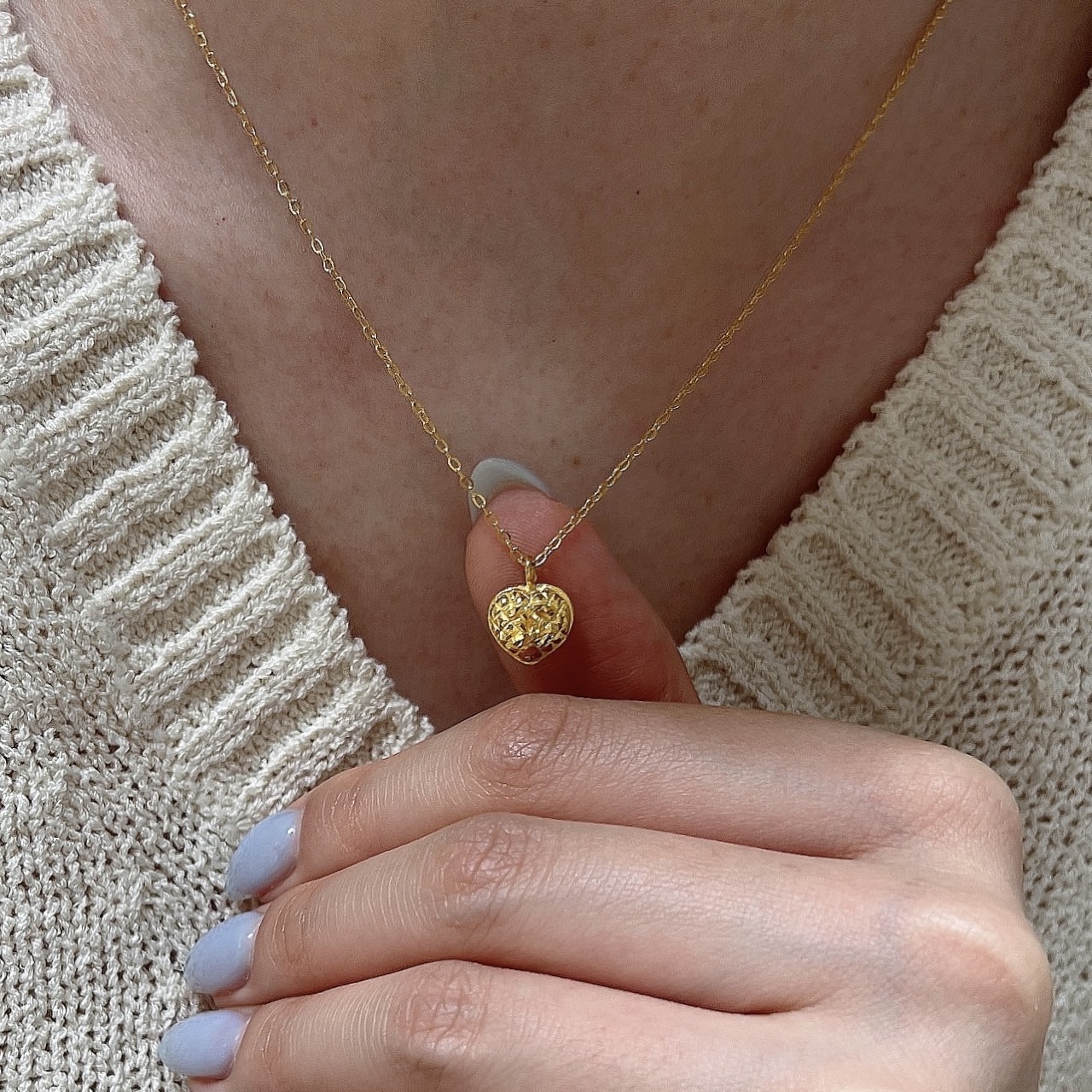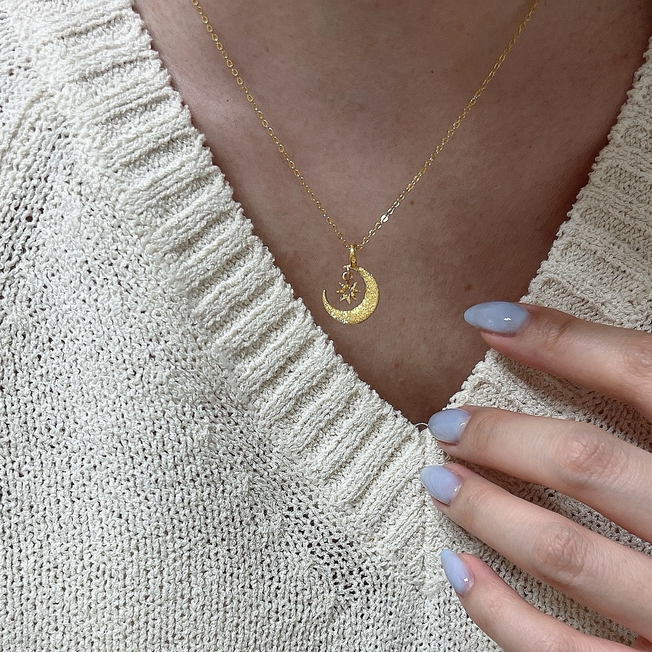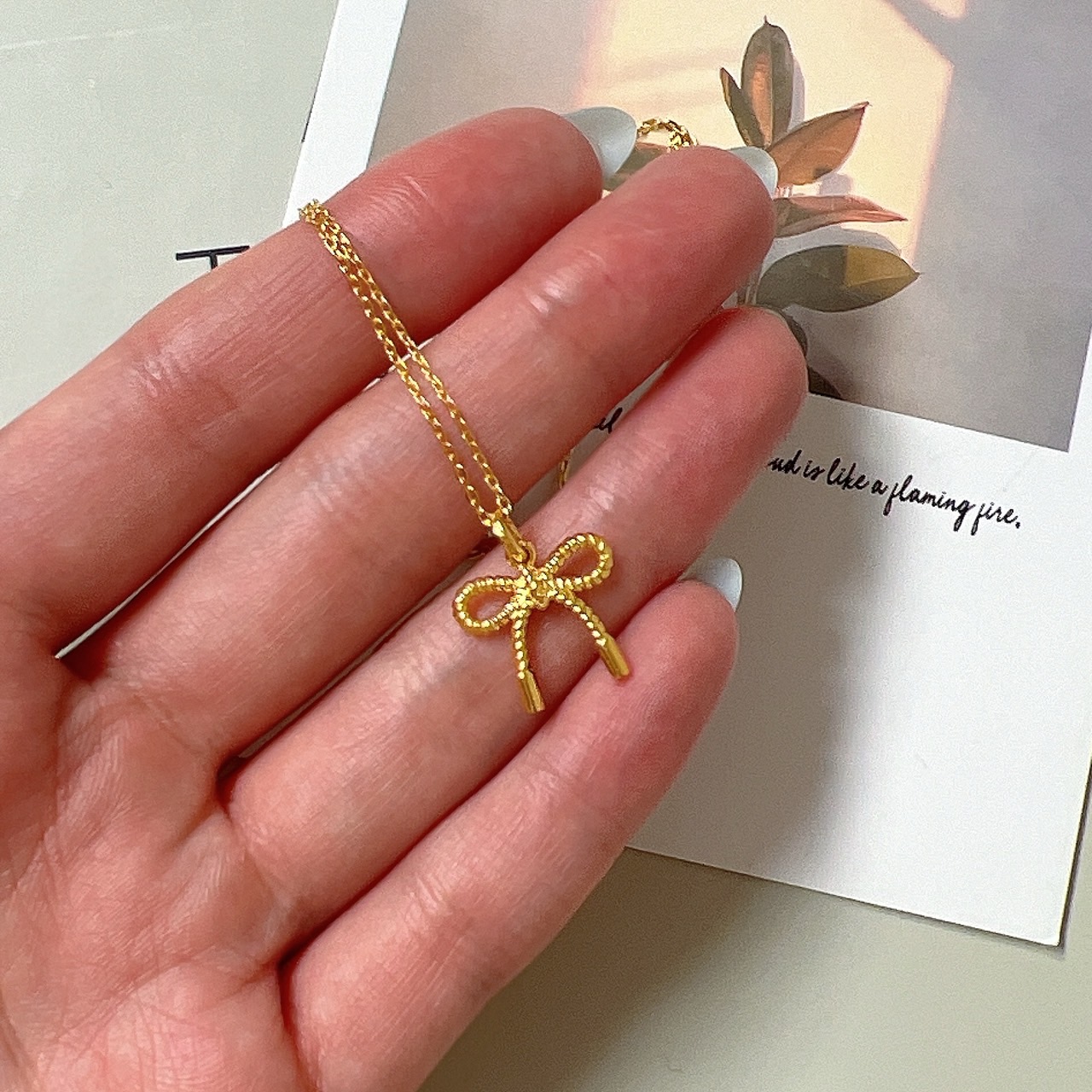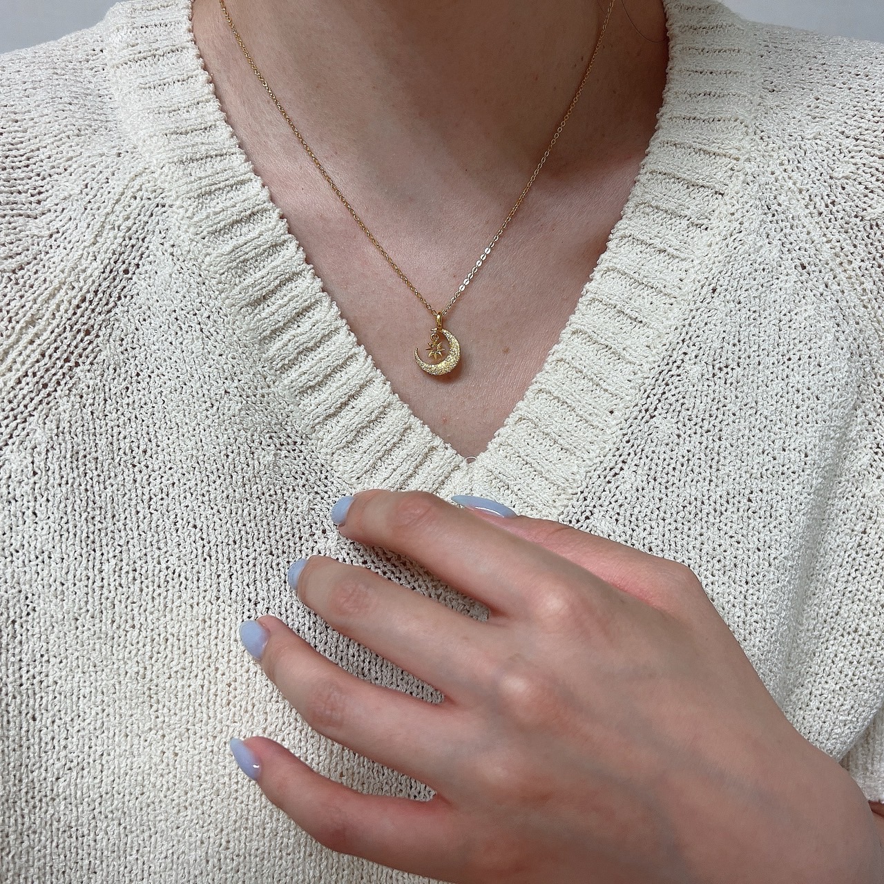 24K Pure Gold Necklace Moon Ribbon Heart 3.75g