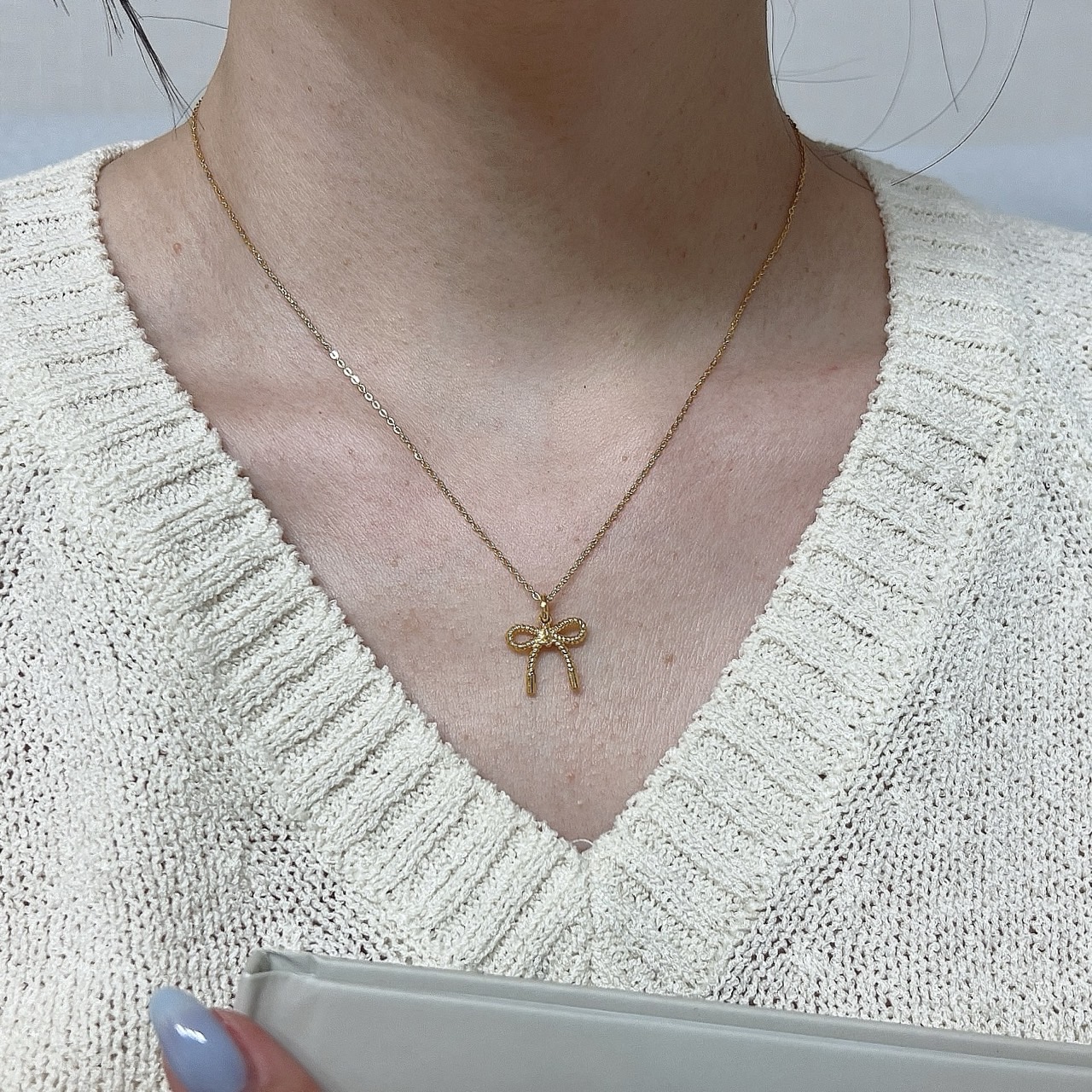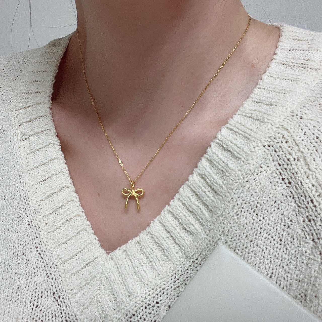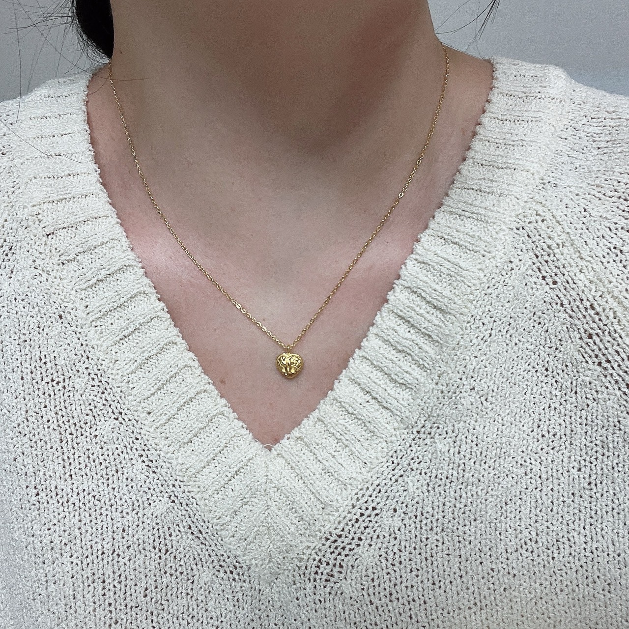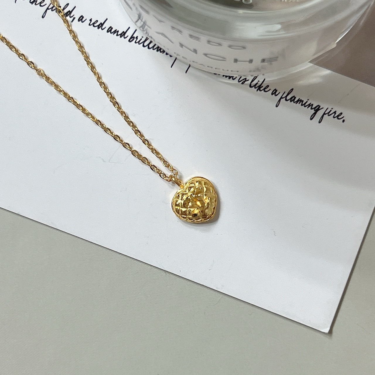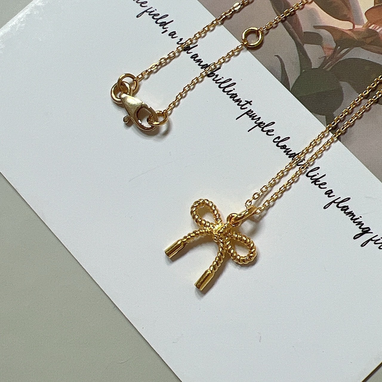 24K Pure Gold Necklace Moon Ribbon Heart 3.75g