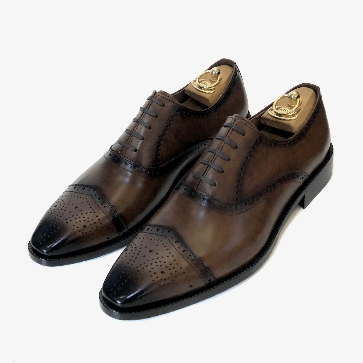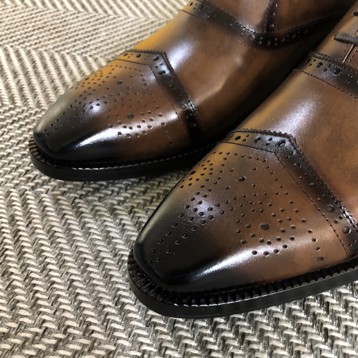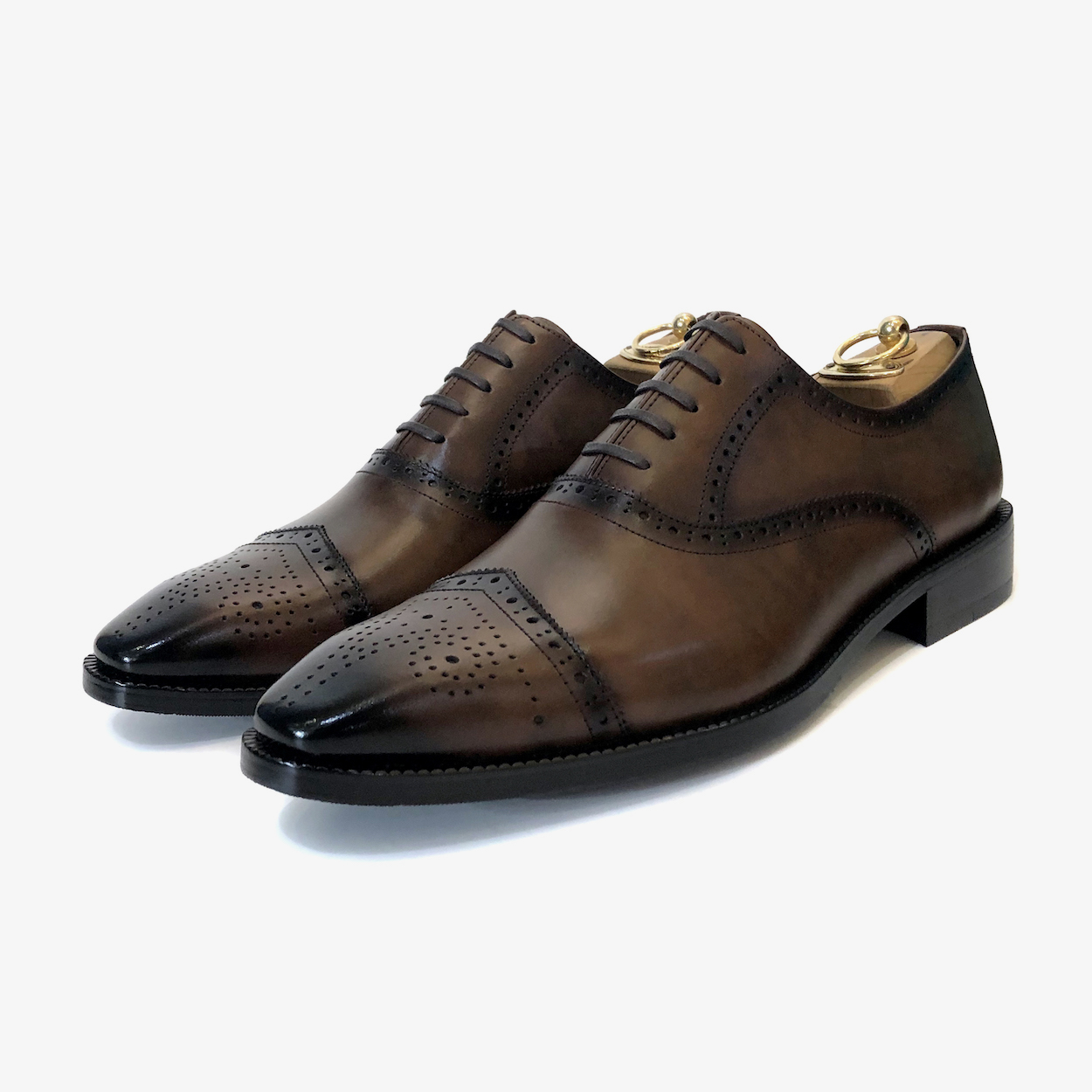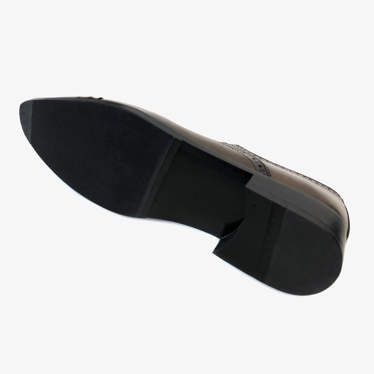: 앞코와 옆면의 브로그 디테일이 세련된 스타일을 완성합니다.