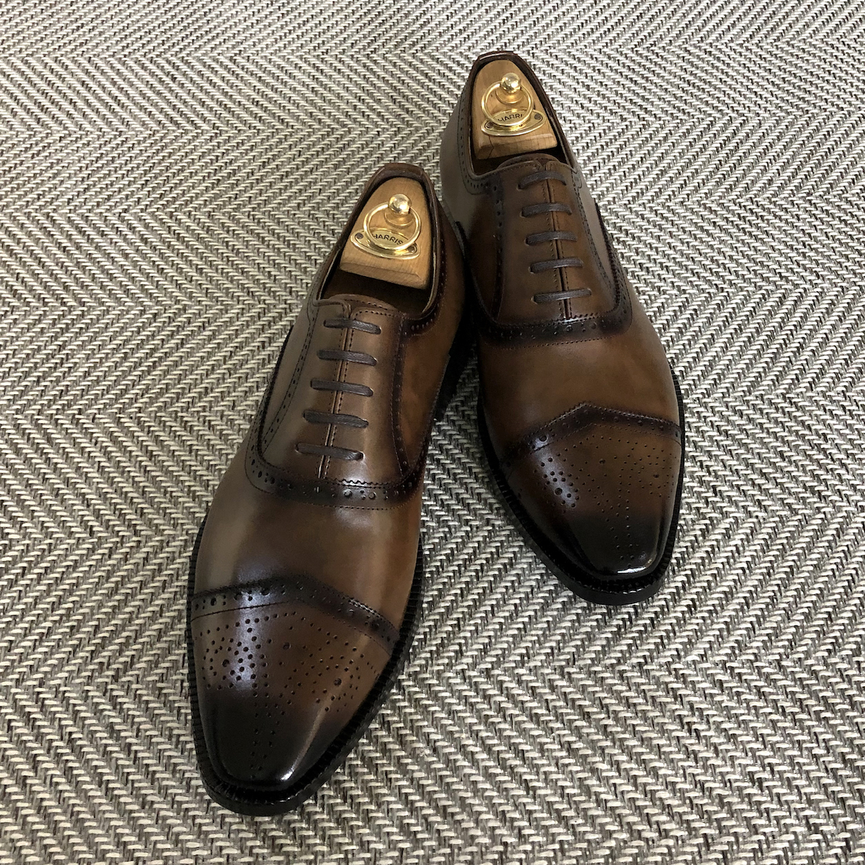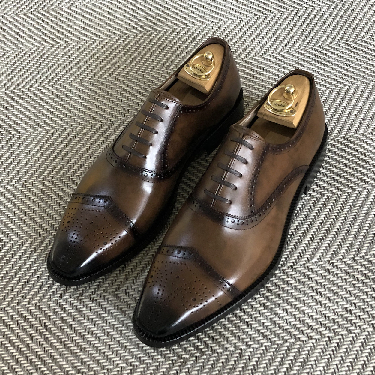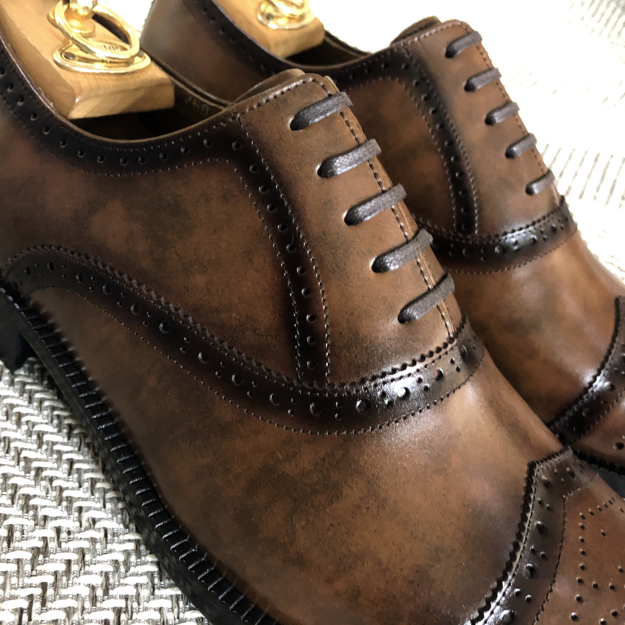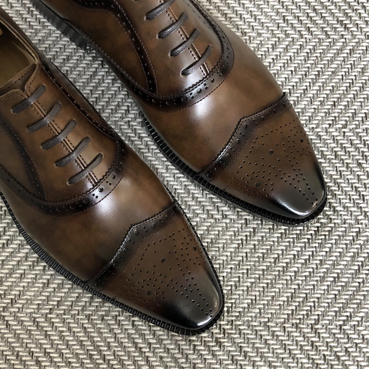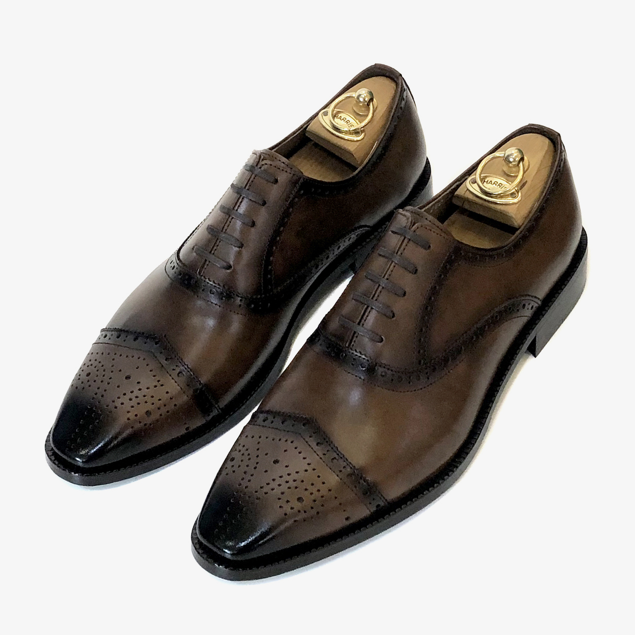 : 앞코와 옆면의 브로그 디테일이 세련된 스타일을 완성합니다.