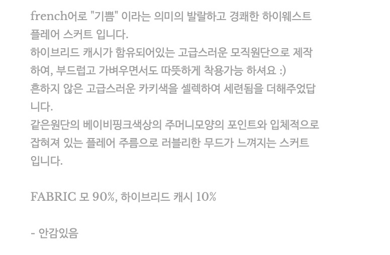 코튼/나일론 혼방소재의 A라인 주름 스커트예요.