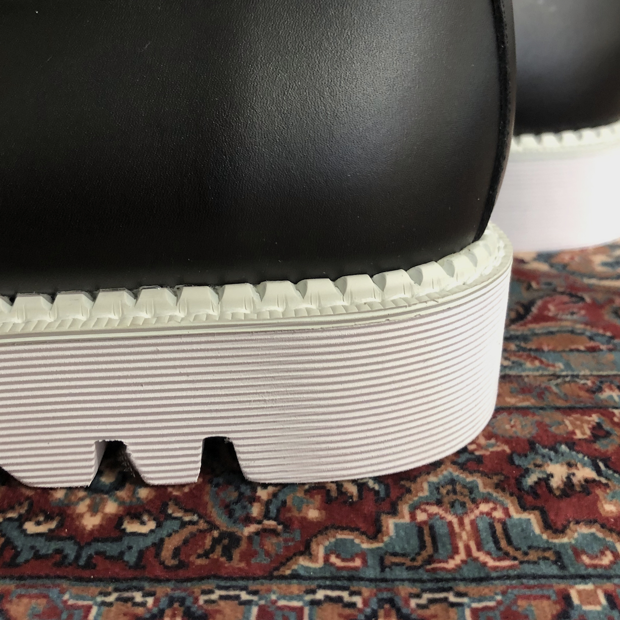 : 크링크 원단으로 제작된 앞코 부분이 독특하고 스타일리시한 느낌을 줍니다.