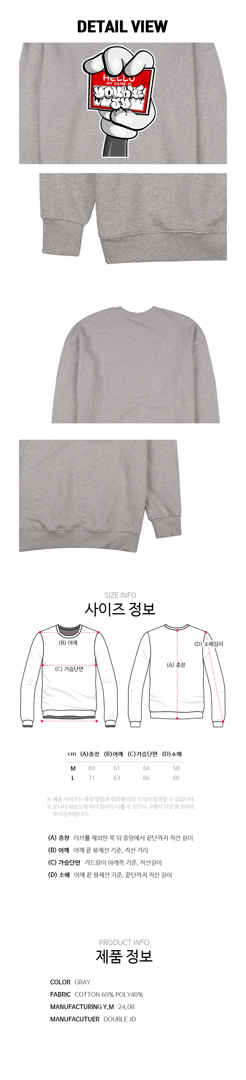 드로잉 그래픽의 탄탄한 3단쭈리 맨투맨입니다