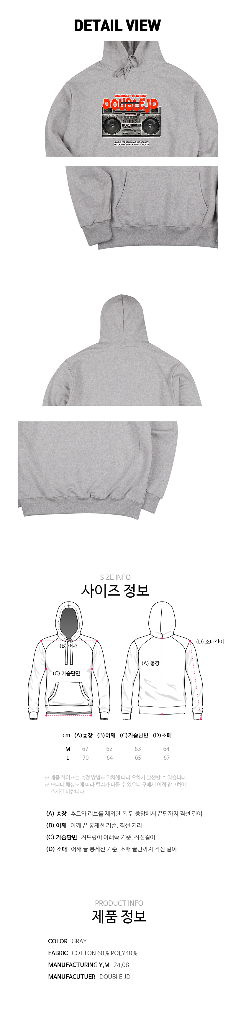 RIDING BIKE CAT 오버핏 후드 티셔츠 (멜란지 그레이)