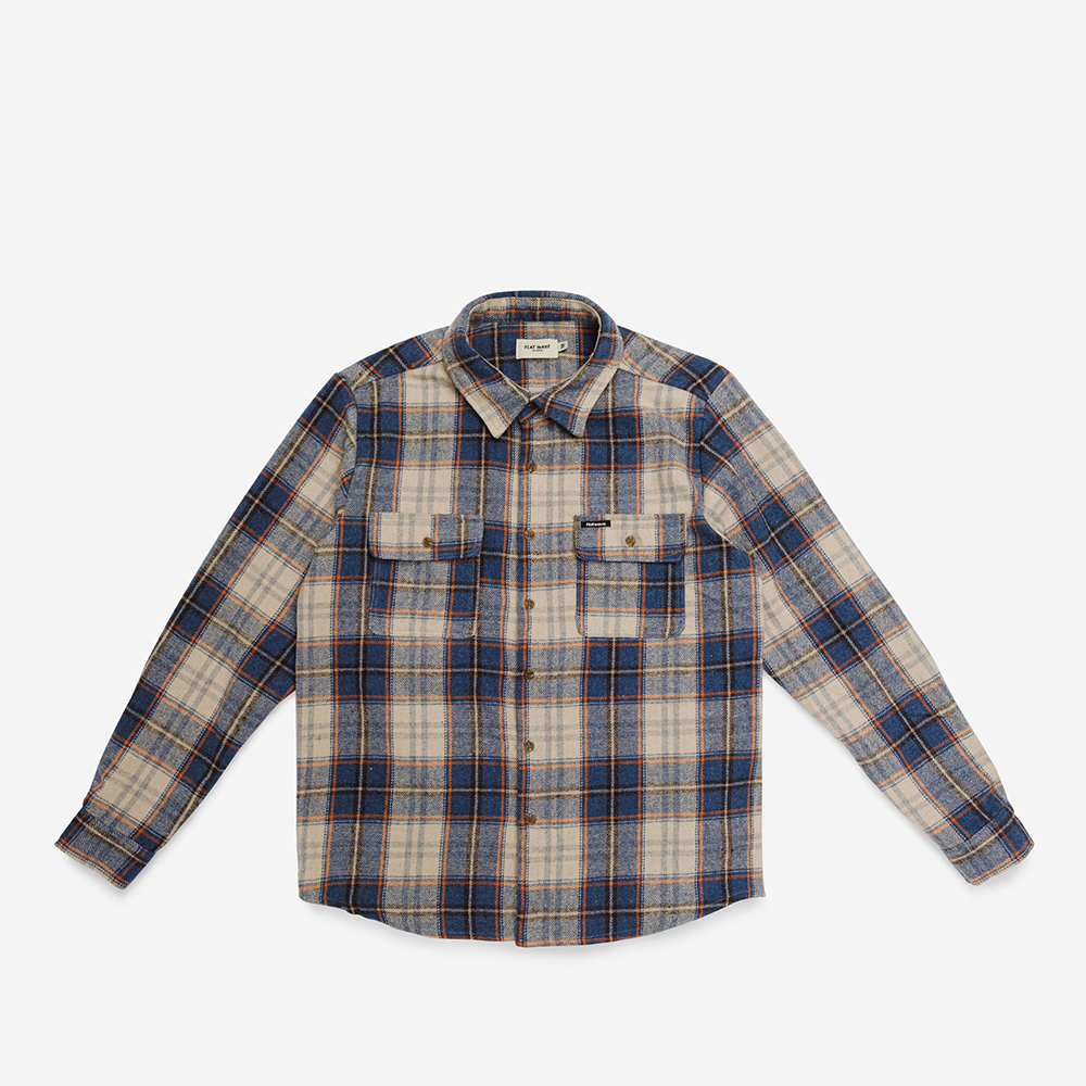Cross Cut-Off Tartan Check Hoodie Shirt ((Navy))