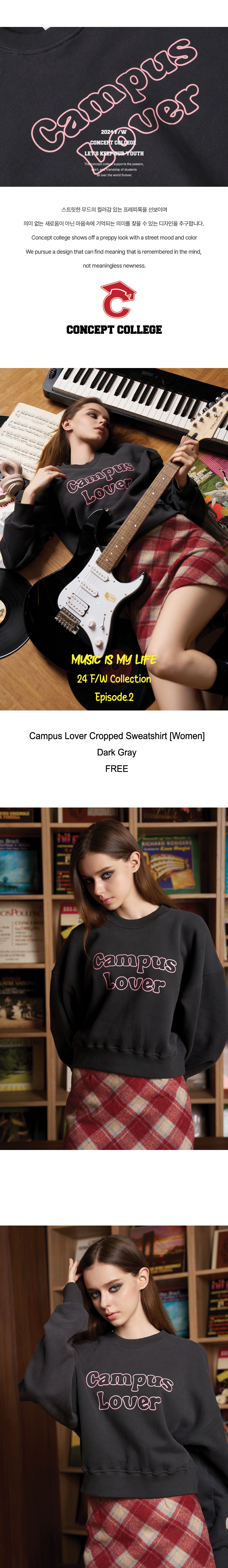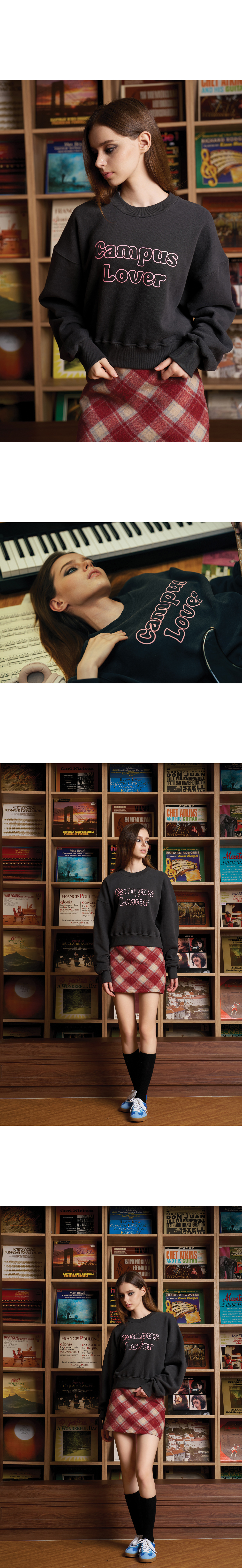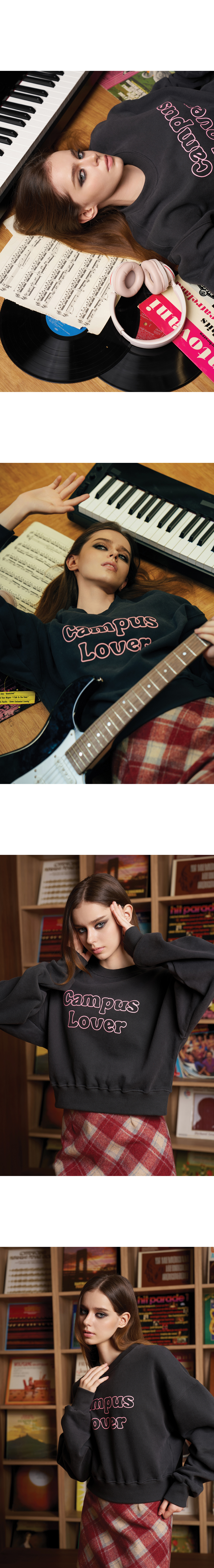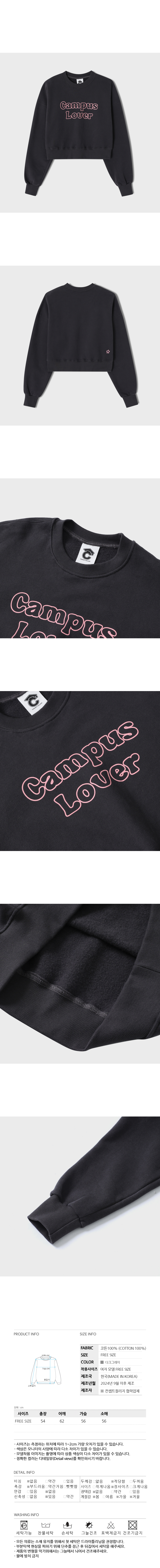 가슴 전면에 Campus Lover 문구가 더해진 여성용 세미 크롭 스웨트 셔츠입니다.