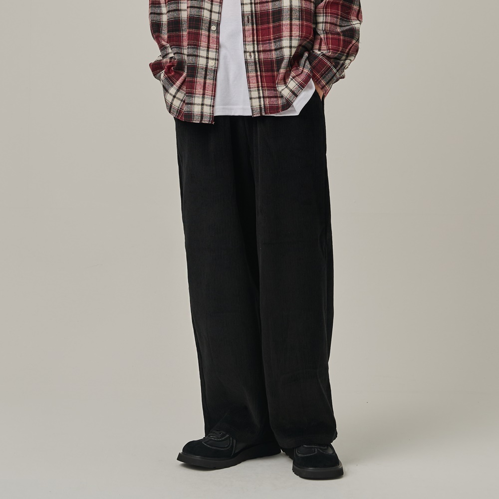 Fleece Bonding Corduroy Wide Pants ((Charcoal))