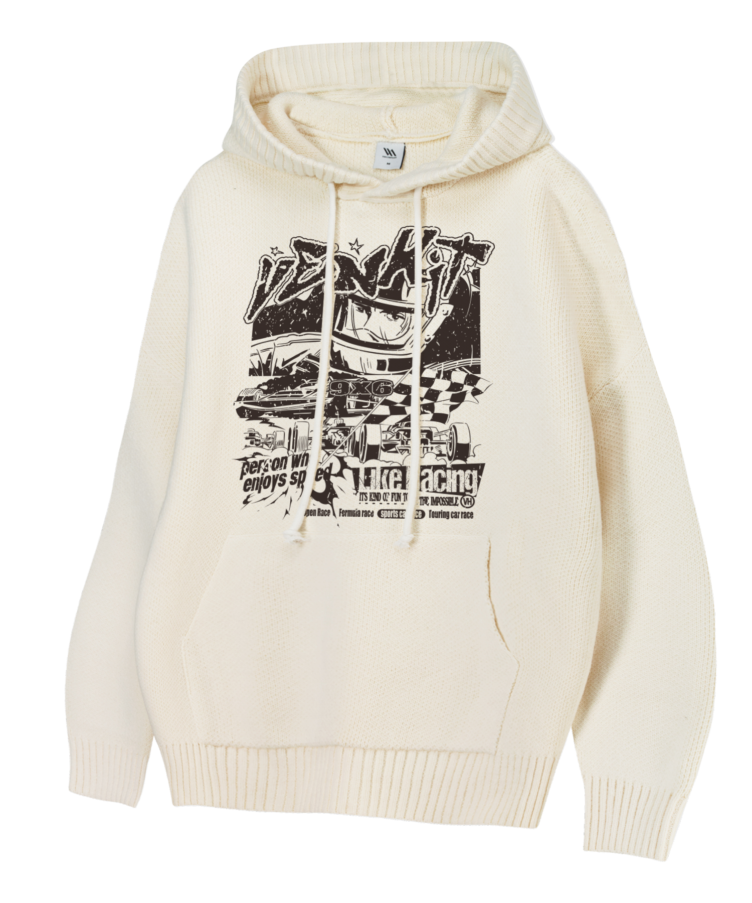 STAR CAT 오버핏 후드 티셔츠[화이트 메란지]