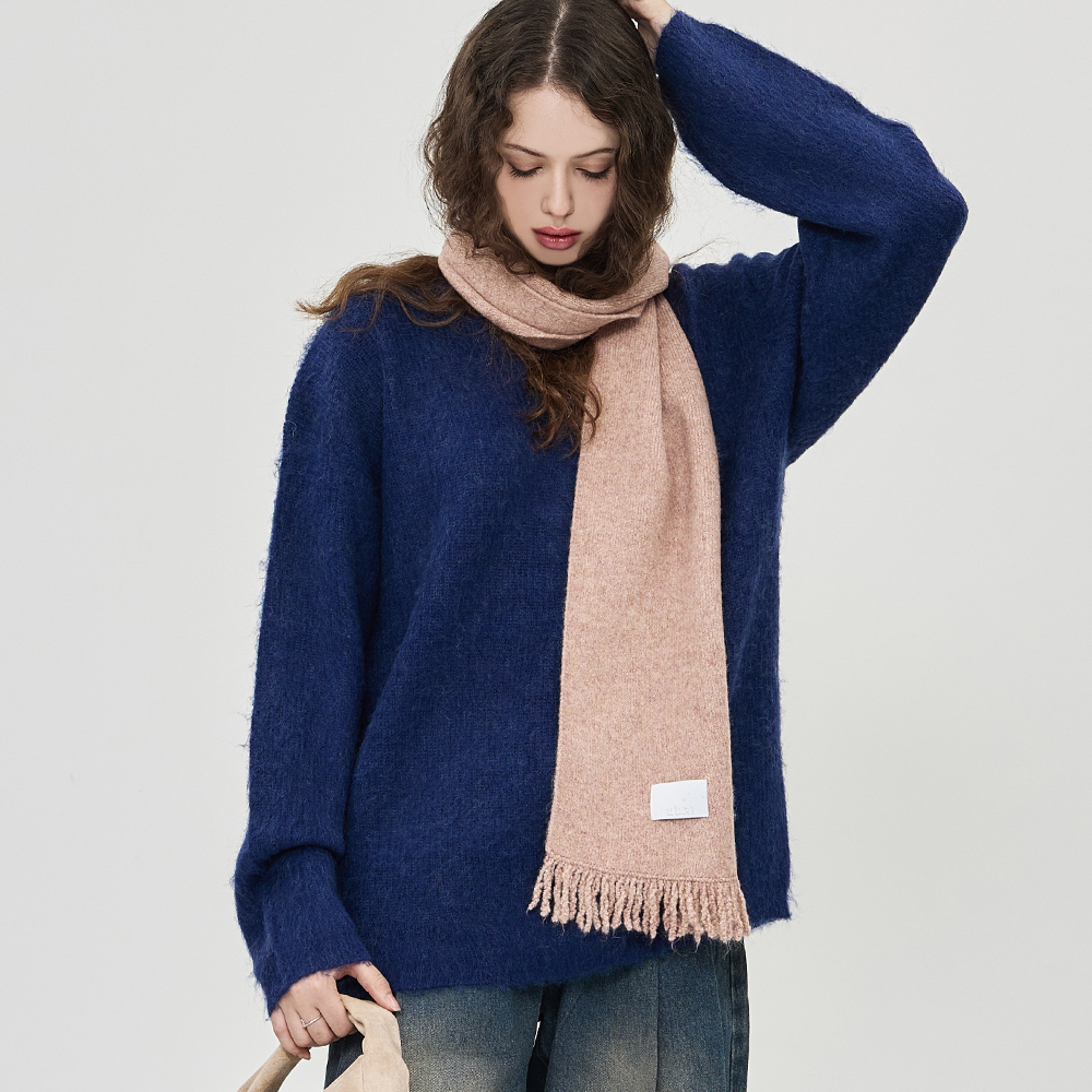 유니크한 스트라이프 디자인의 타이 니트 머플러