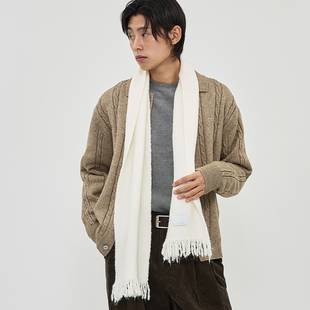 유니크한 스트라이프 디자인의 타이 니트 머플러