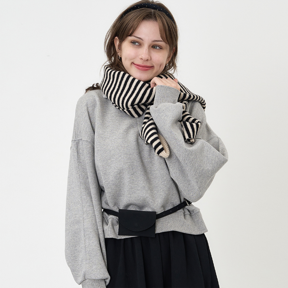 유니크한 스트라이프 디자인의 타이 니트 머플러