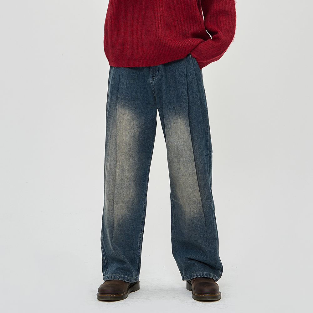 뒷포켓 D자수가 포인트인 와이드 데님팬츠