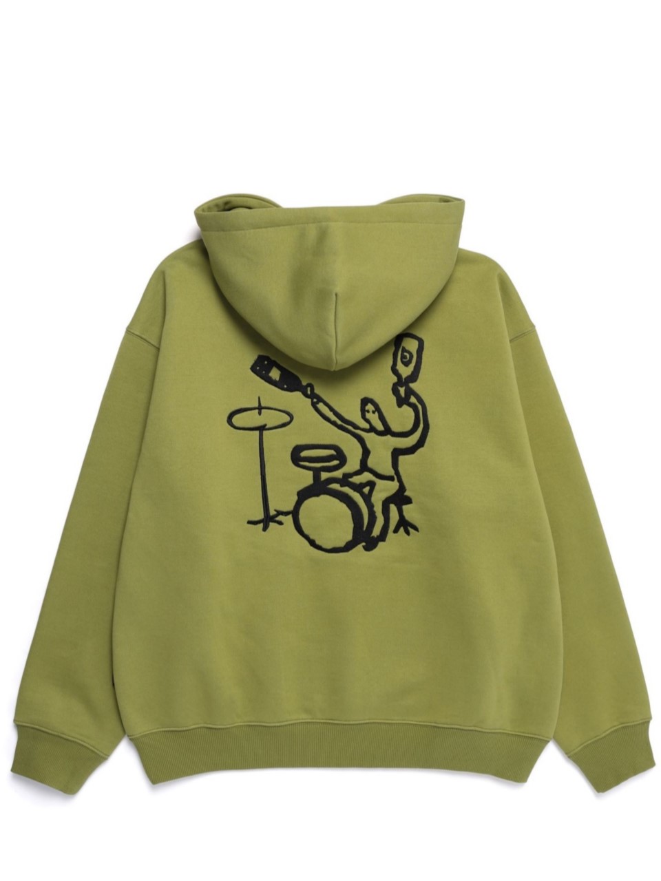 RIDING BIKE CAT 오버핏 후드 티셔츠 (카키)