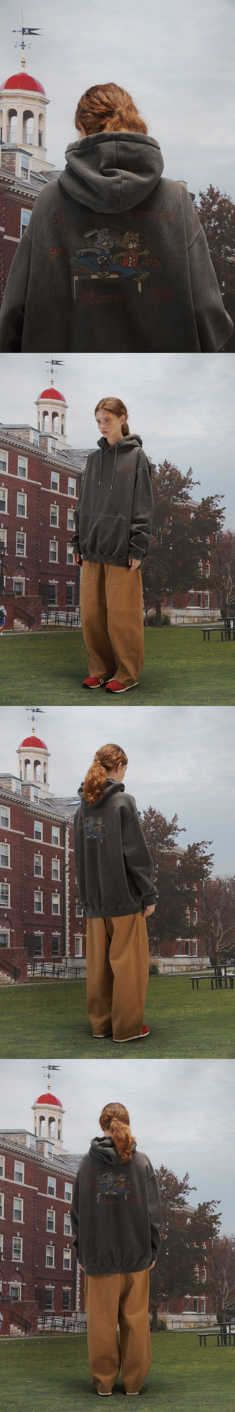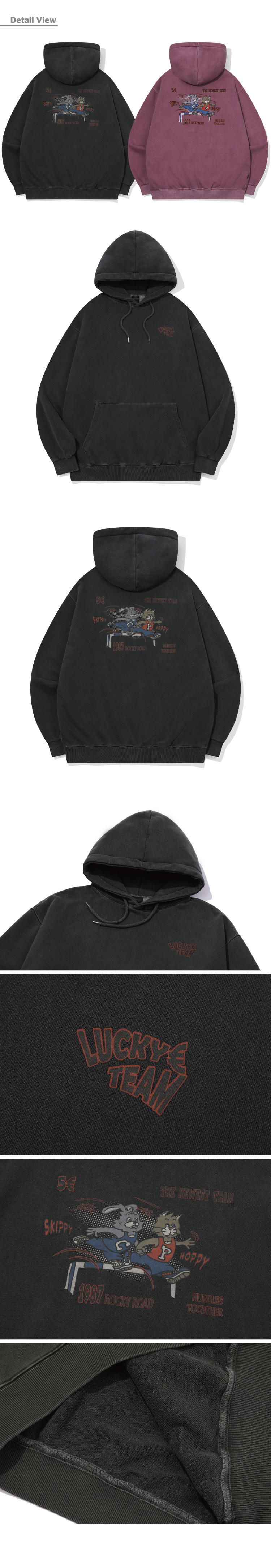 아트웍이 피그먼트 워싱되며 가공 처리하여 유니크한 무드를 연출했습니다.