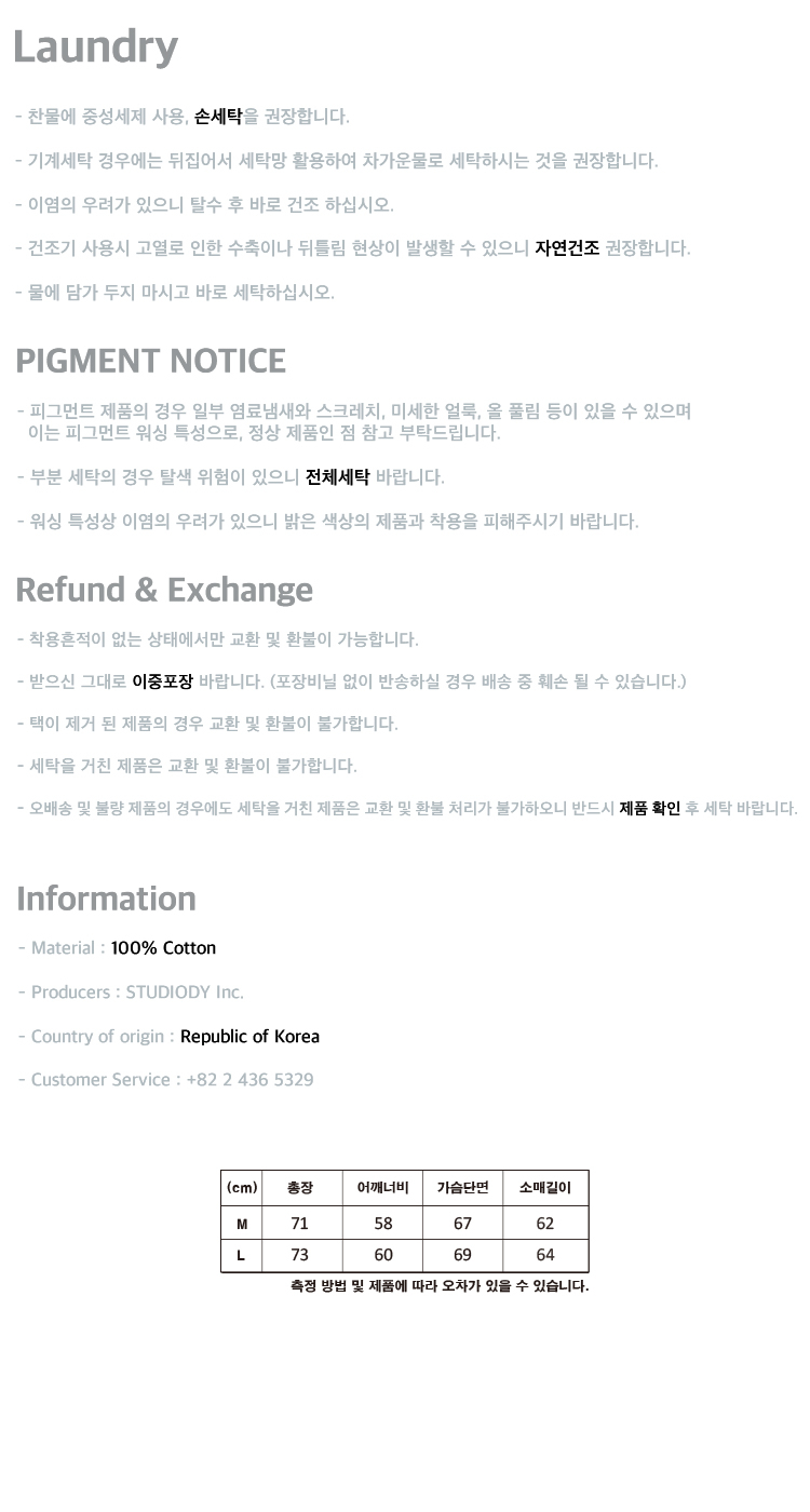 아트웍이 피그먼트 워싱되며 가공 처리하여 유니크한 무드를 연출했습니다.