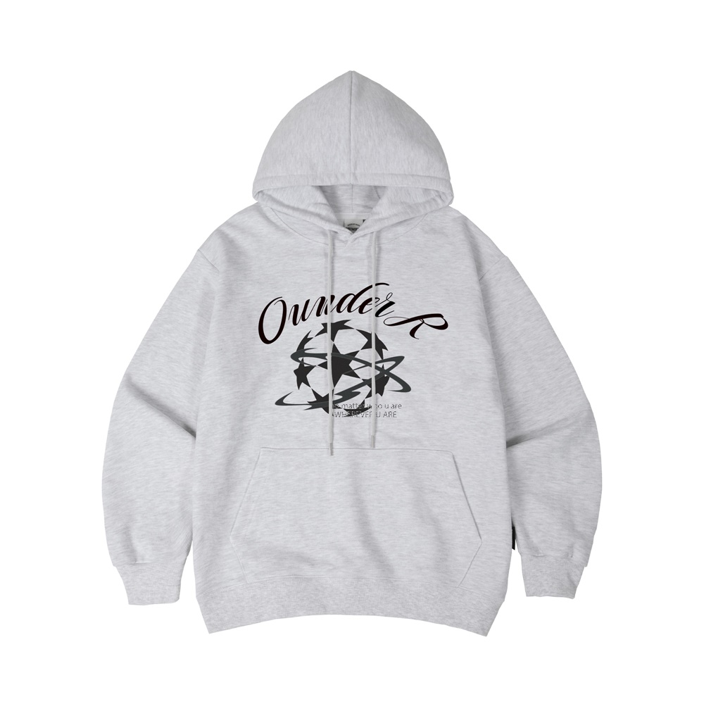 STAR CAT 오버핏 후드 티셔츠[화이트 메란지]