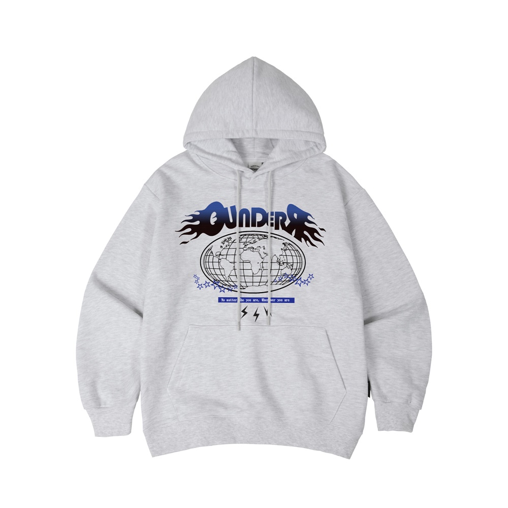 RIDING BIKE CAT 오버핏 후드 티셔츠 (멜란지 그레이)