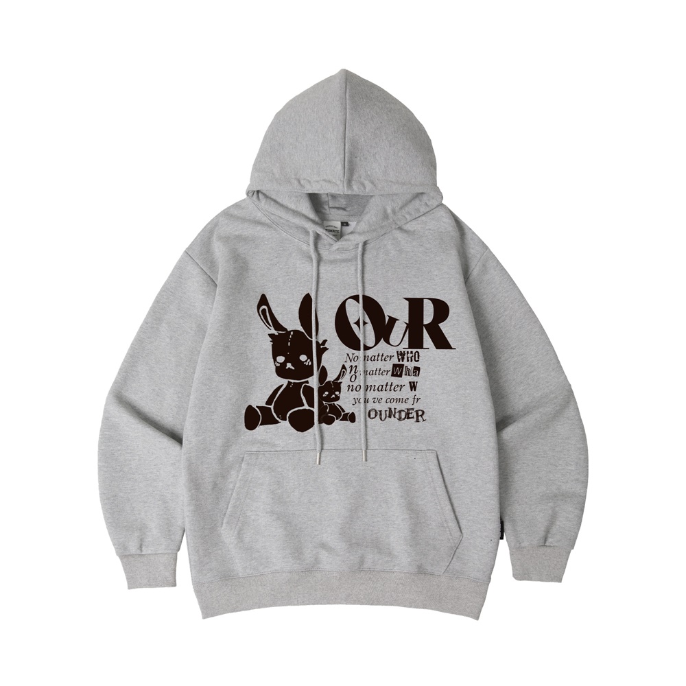 BABY LION 오버핏 후드 티셔츠[화이트 메란지]