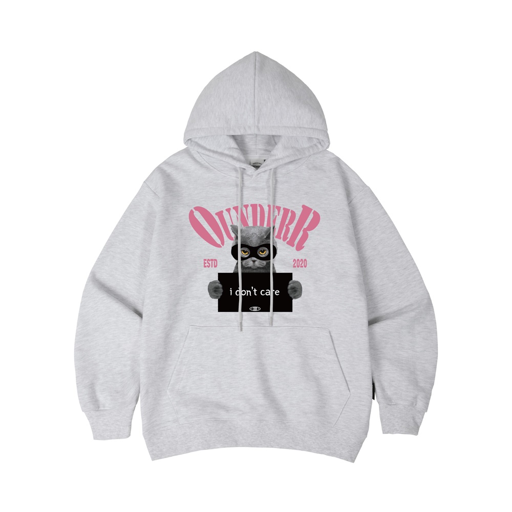 RIDING BIKE CAT 오버핏 후드 티셔츠 (멜란지 그레이)