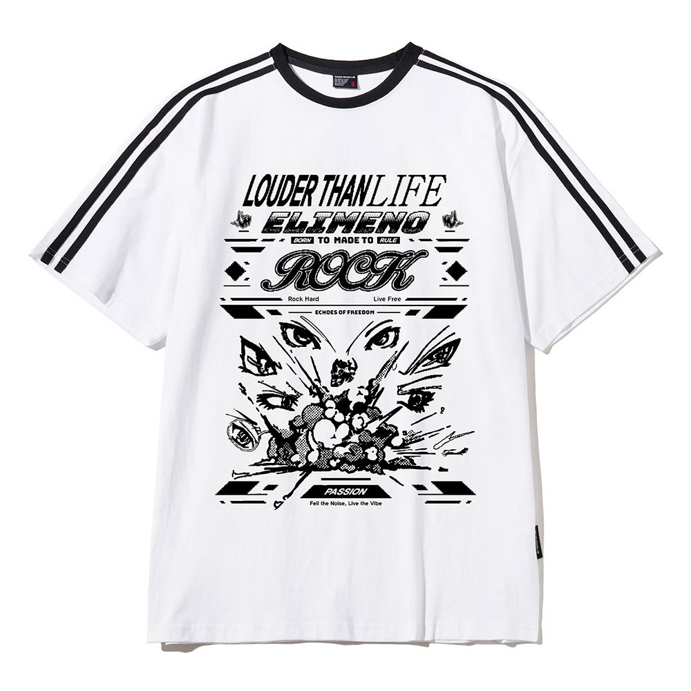 가벼운 소재로 그래픽이 특징인 스트릿 캐쥬얼 반팔티셔츠